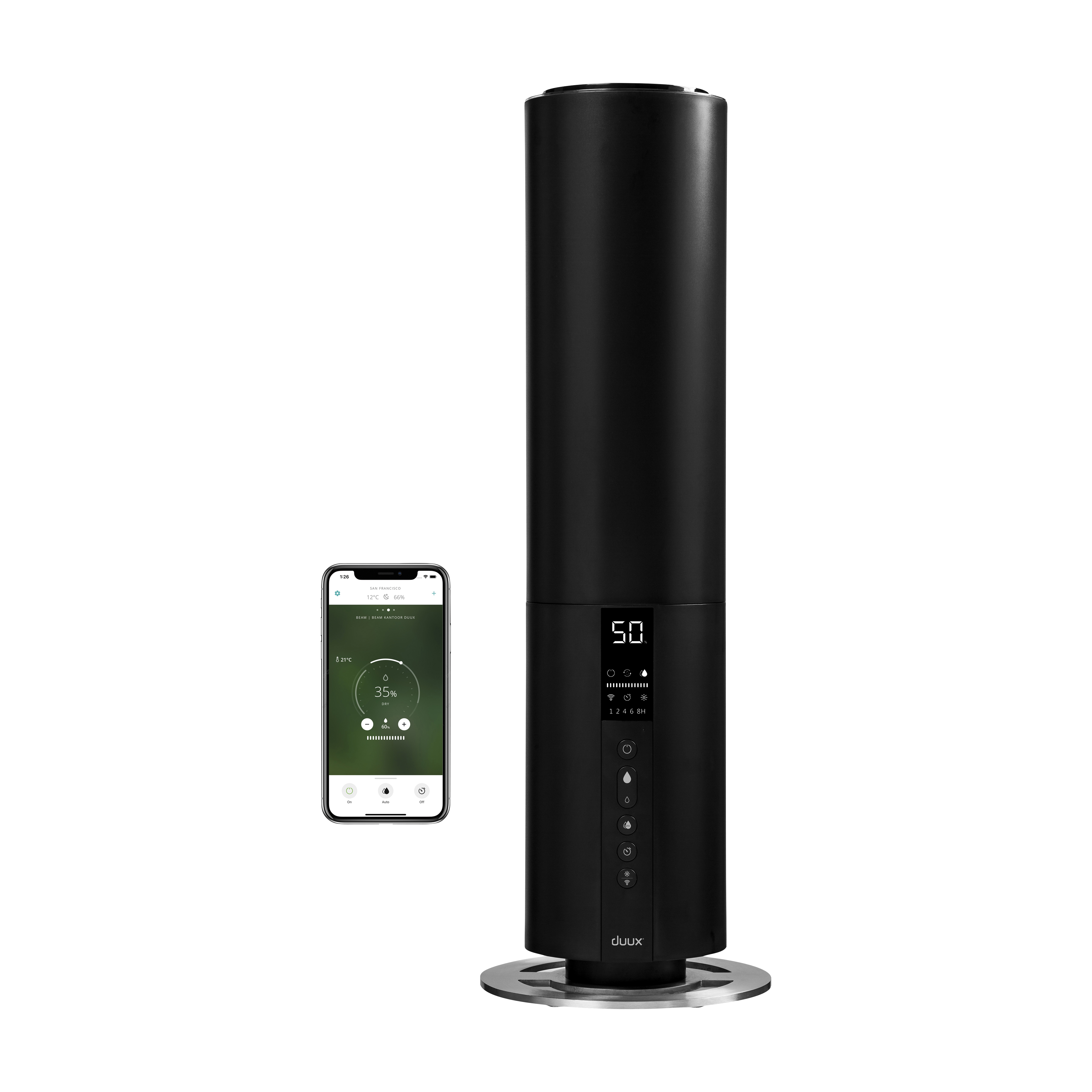 På LED-skærmen aflæses al den information, du har brug for, inklusive indstillinger og værdier som temperatur og fugtighed. Og med den aftagelige fjernbetjening kan luftfugteren betjenes hvor som helst i rummet, hvilket betyder, at du ikke engang behøver at stå op. Du kan også bruge Duux-appen til at overvåge og kontrollere luftkvaliteten. Duux-app er tilgængelig til iOS og Android.