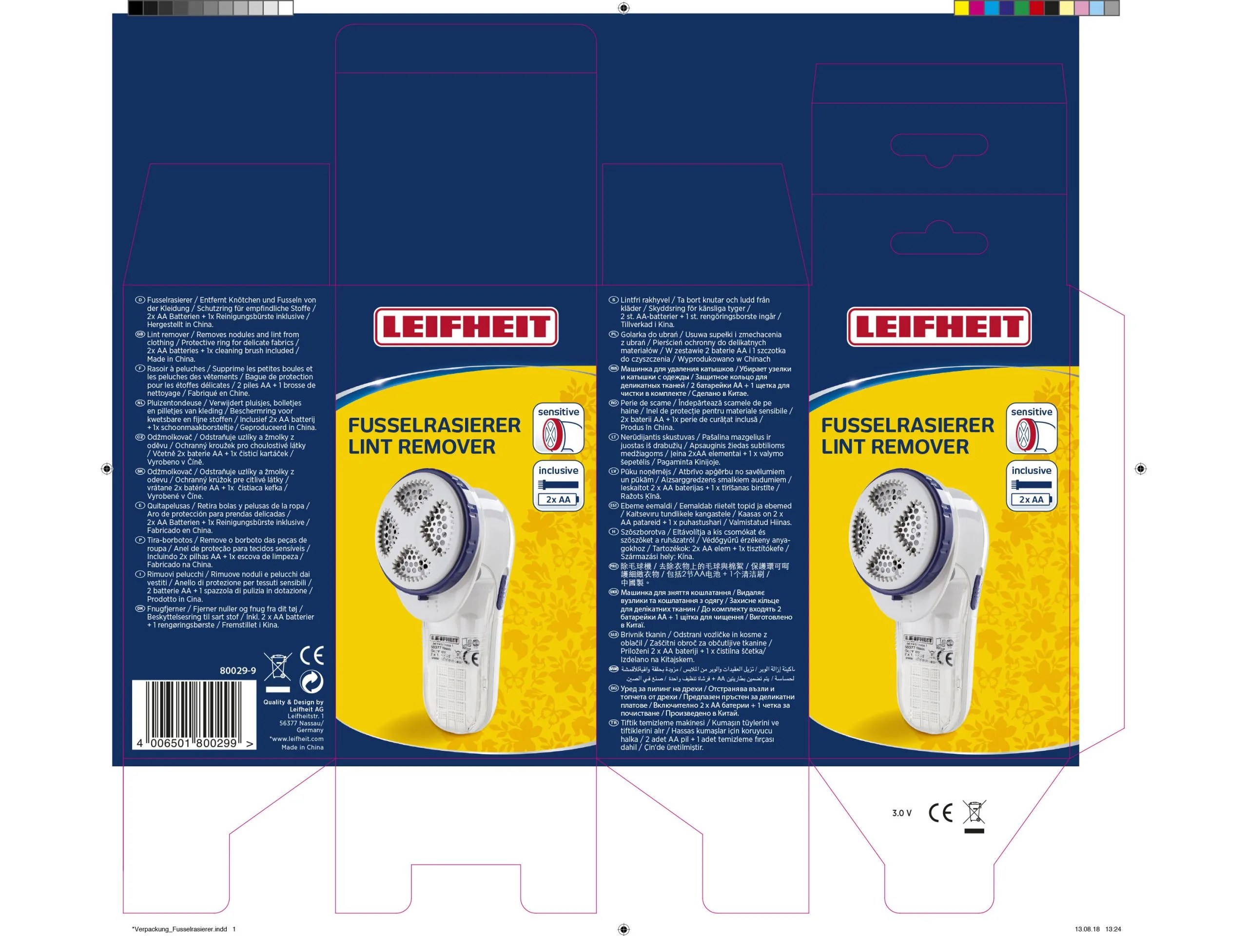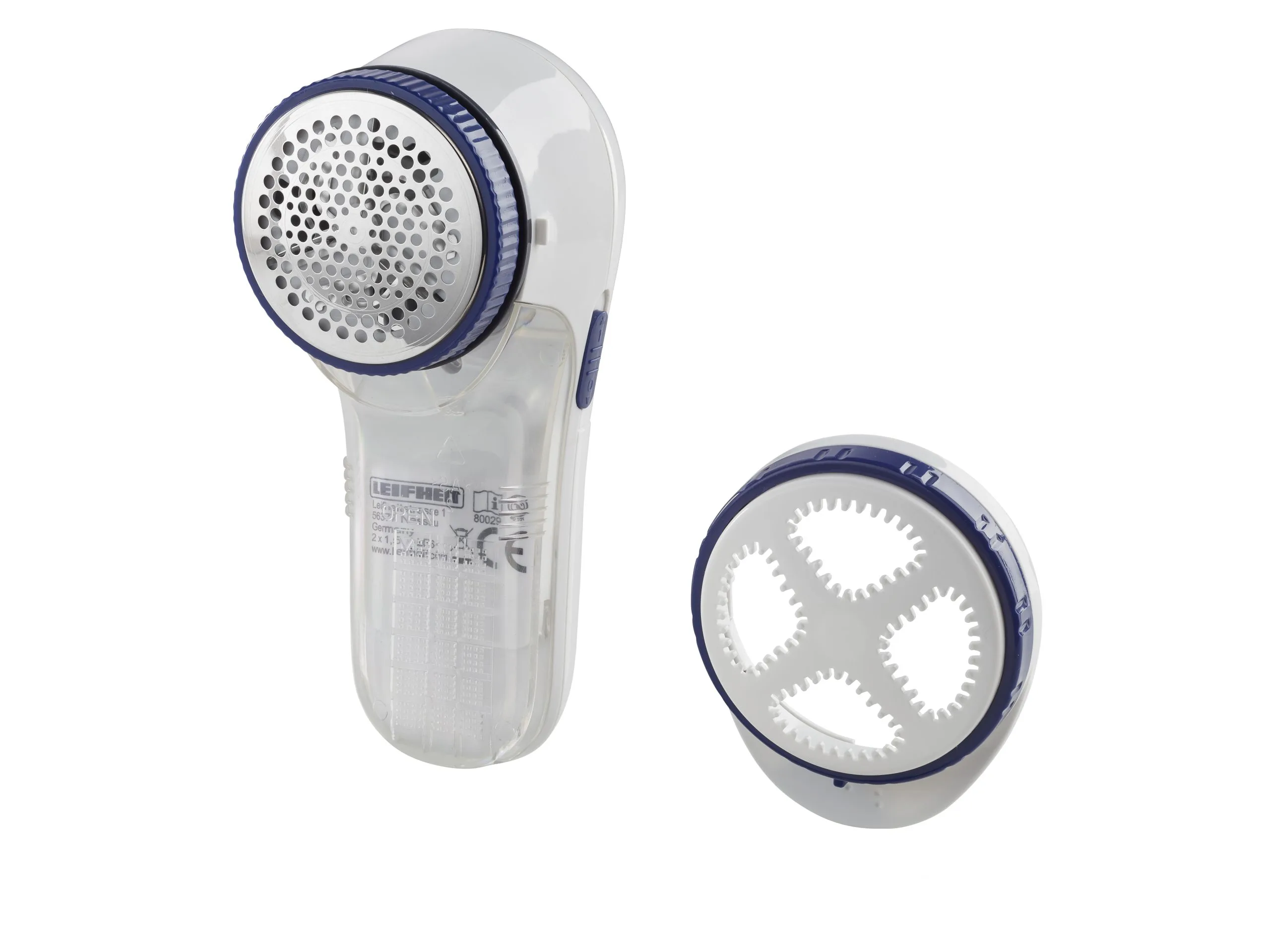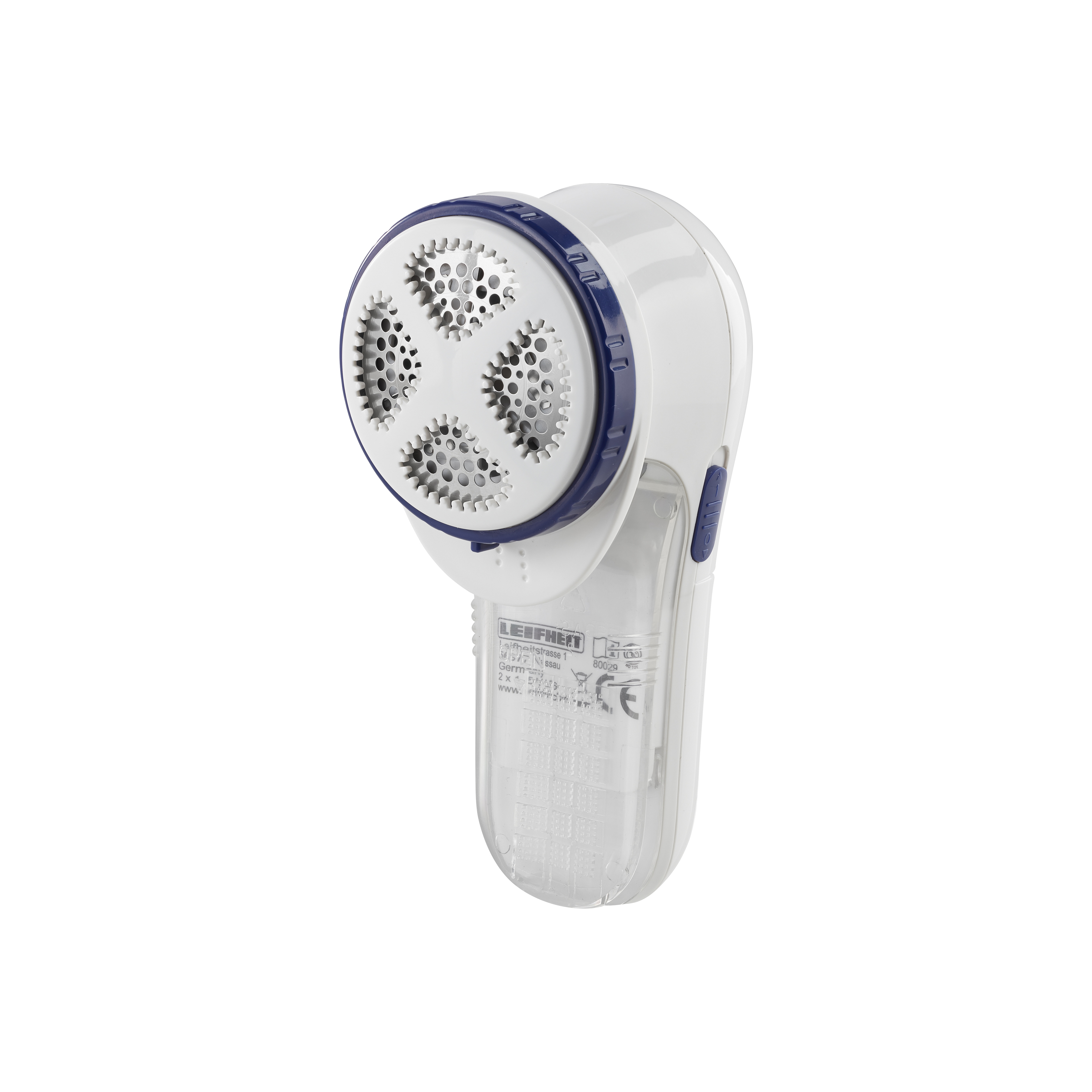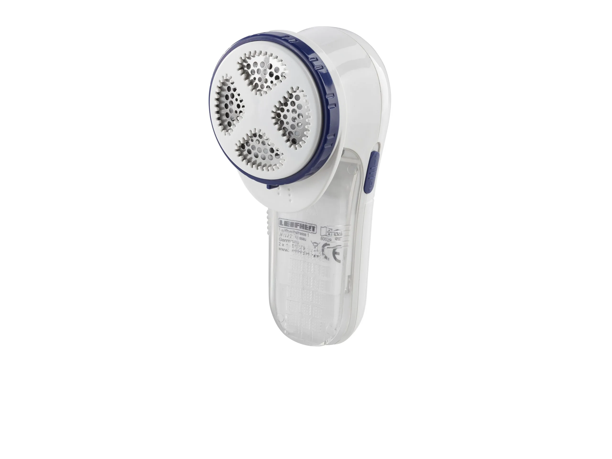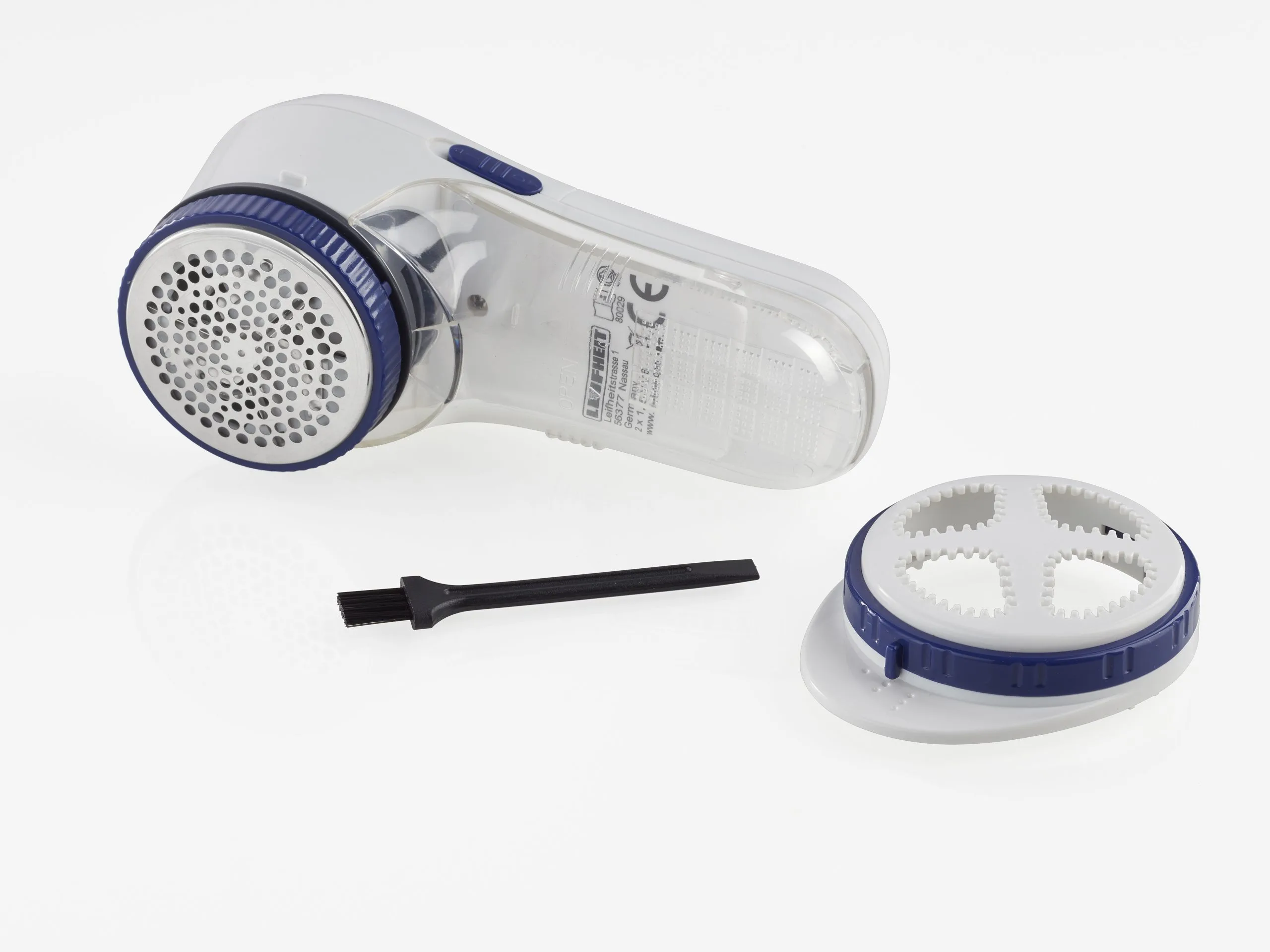 Roterende knivblade af rustfrit stål med beskyttelsesdæksel, der kan justeres i tre højder, så fnugfjerneren kan bruges på alle materialer, også det sarteste tøj. Rensebørste og 2 x AA-batterier medfølger.