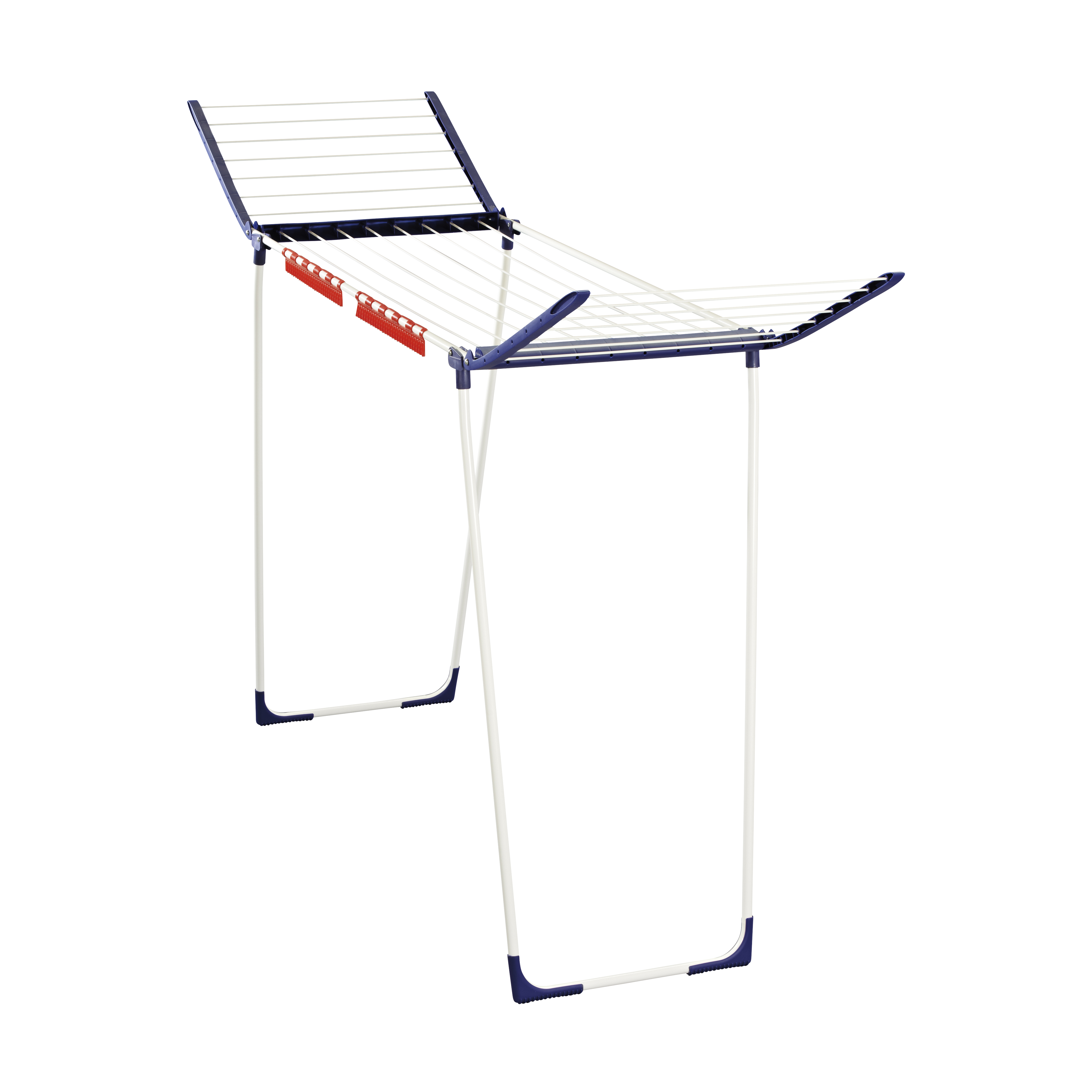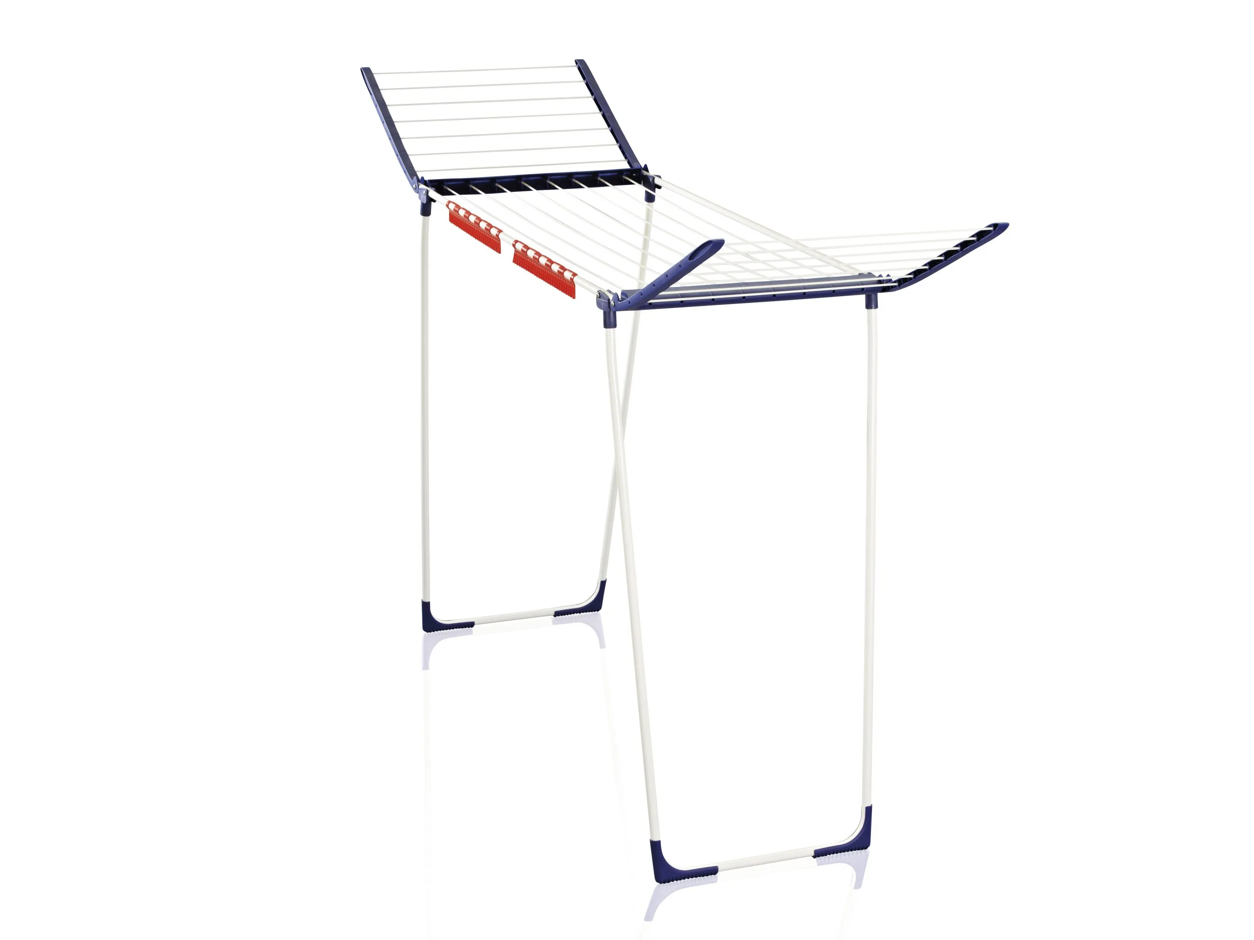 Dette tørrestativ er højere (108 cm) end normale tørrestativer, hvilket muliggør tørring af f.eks. lange bukser på hele tørrestativet.