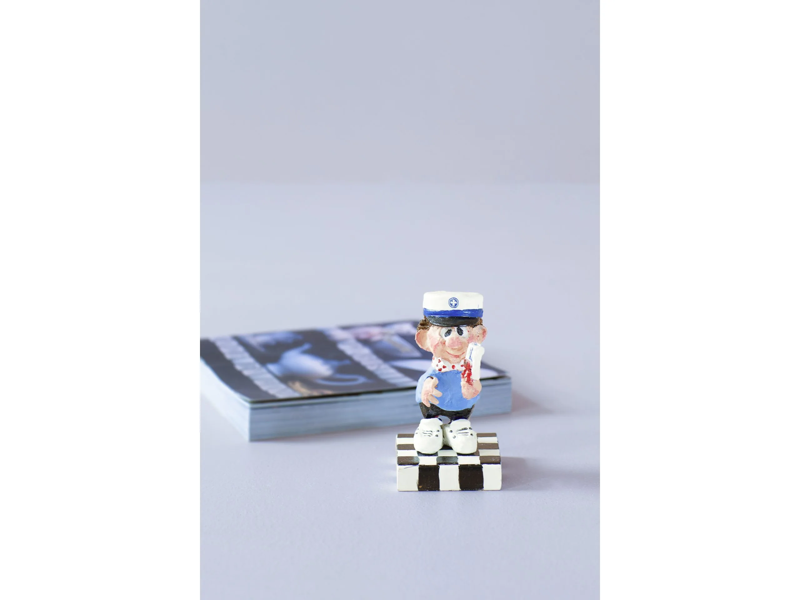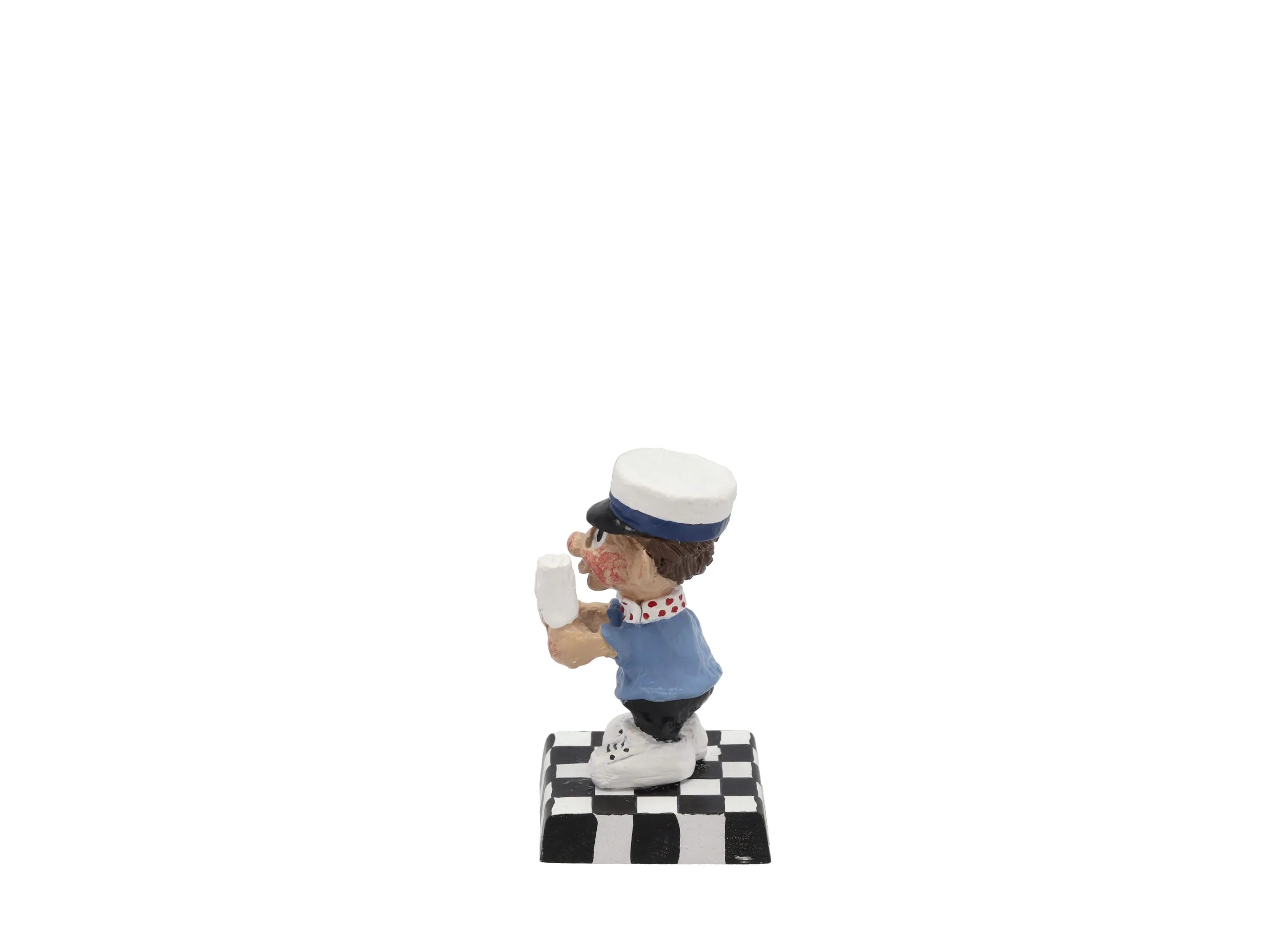 Den blå hue sidder som den skal på den nyudklækkede student. Når studentertiden slutter, skal det markeres med en mindeværdig gave. Denne figur skal gives til en stolt student, som et minde for livet. Figuren er håndmalet og 9 cm høj.