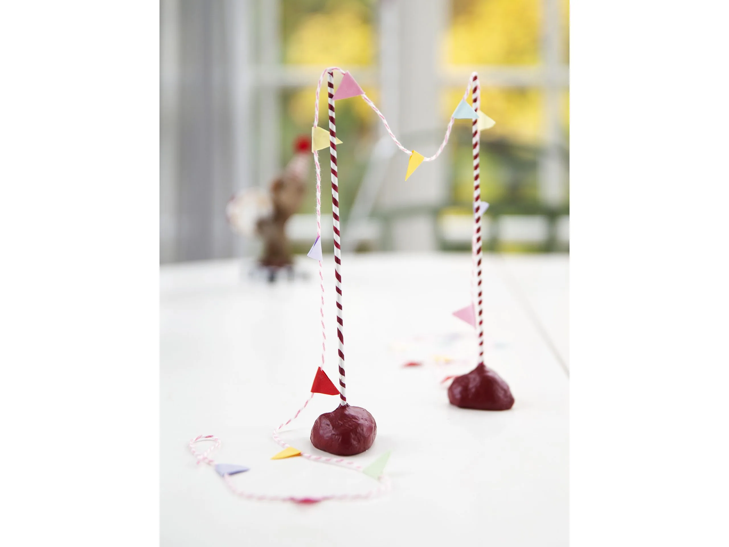 Lad den skønne guirlande bidrage med fest og farver, når der er en fødselsdag eller en anden særlig begivenhed, der skal fejres. De to rød-hvide standere står på sokler af røde hjerter, der spreder ekstra meget kærlighed til festen.
