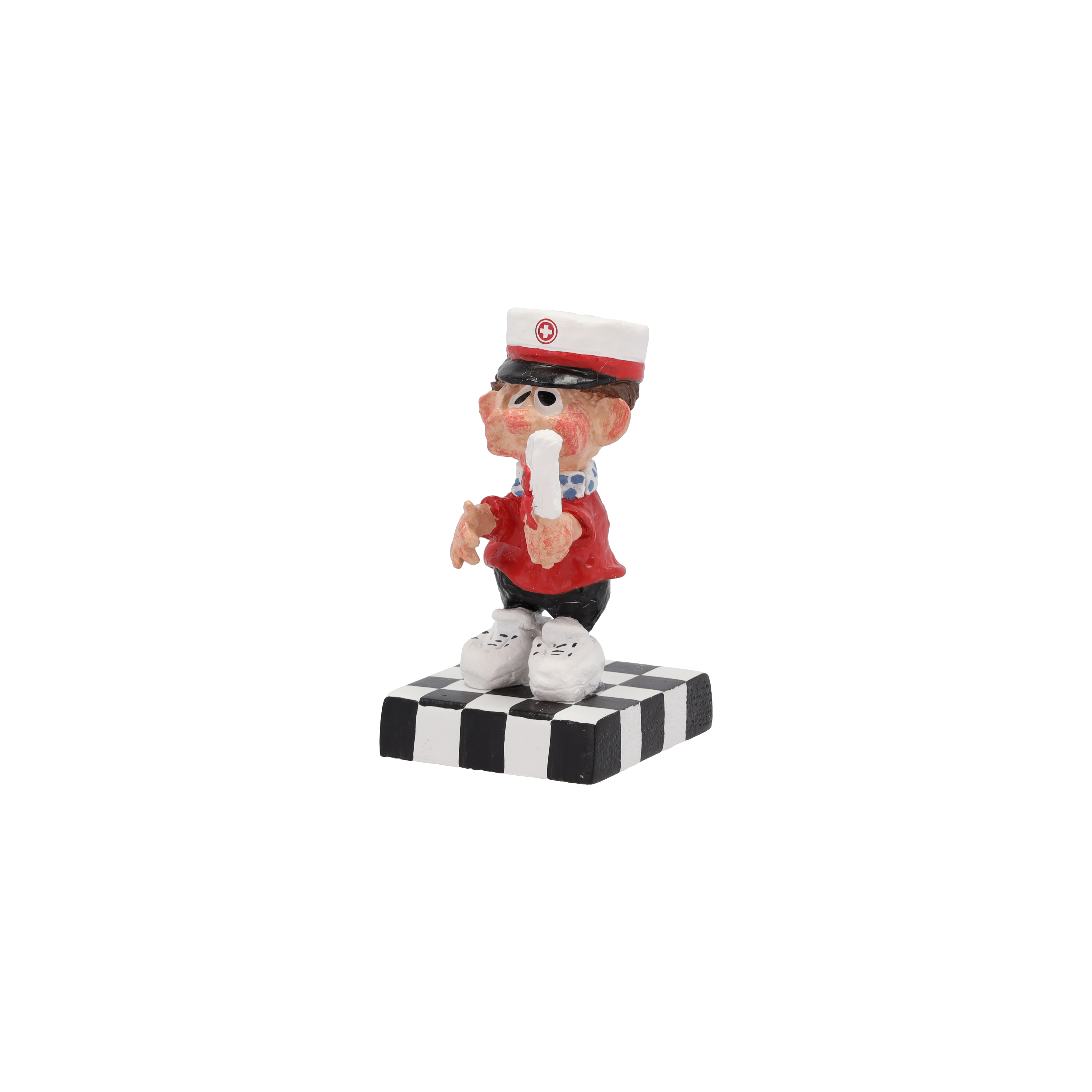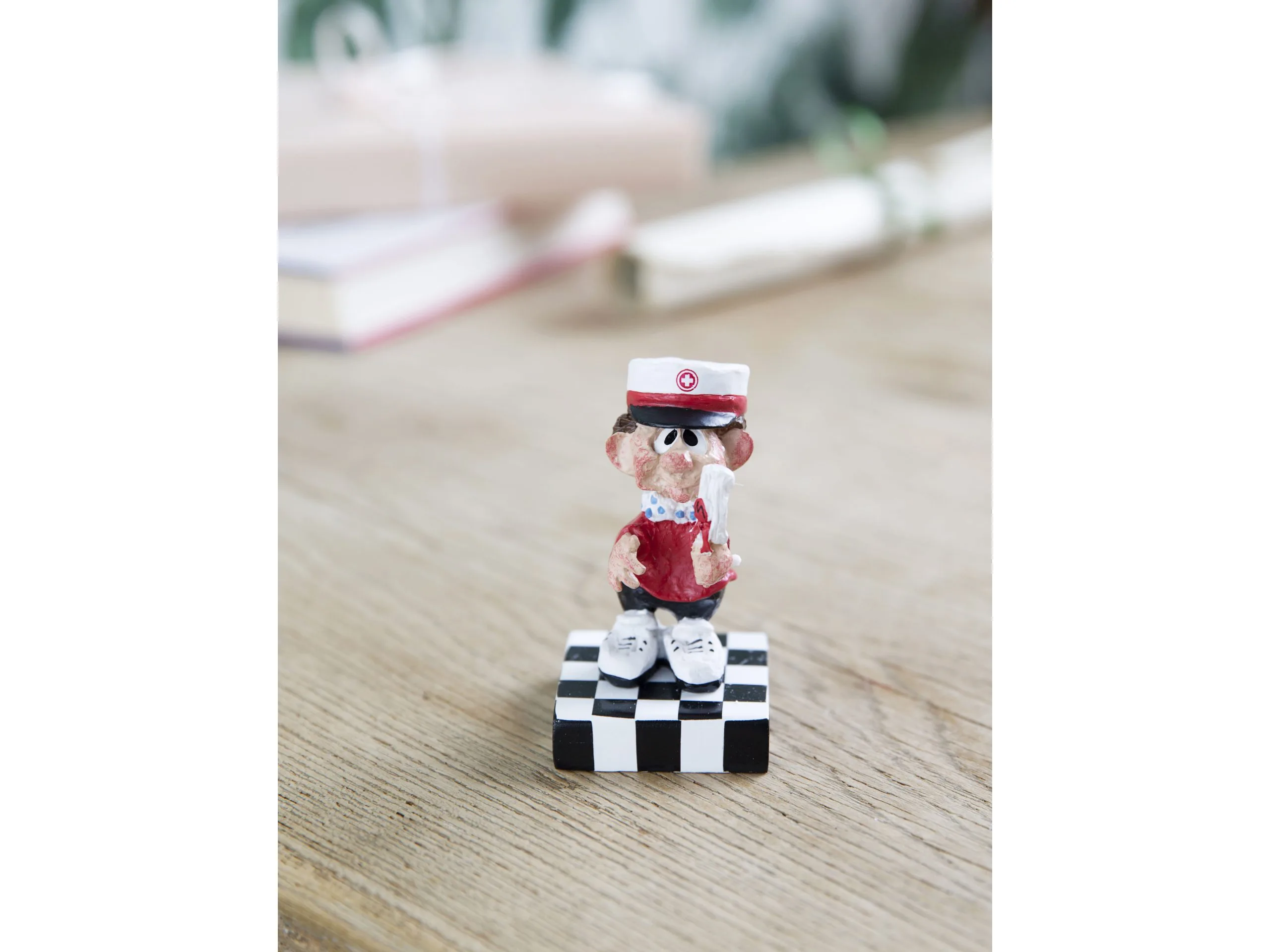 Den røde hue sidder som den skal på den nyudklækkede student. Når studentertiden slutter, skal det markeres med en mindeværdig gave. Denne figur skal gives til en stolt student, som et minde for livet. Figuren er håndmalet og 9 cm høj.