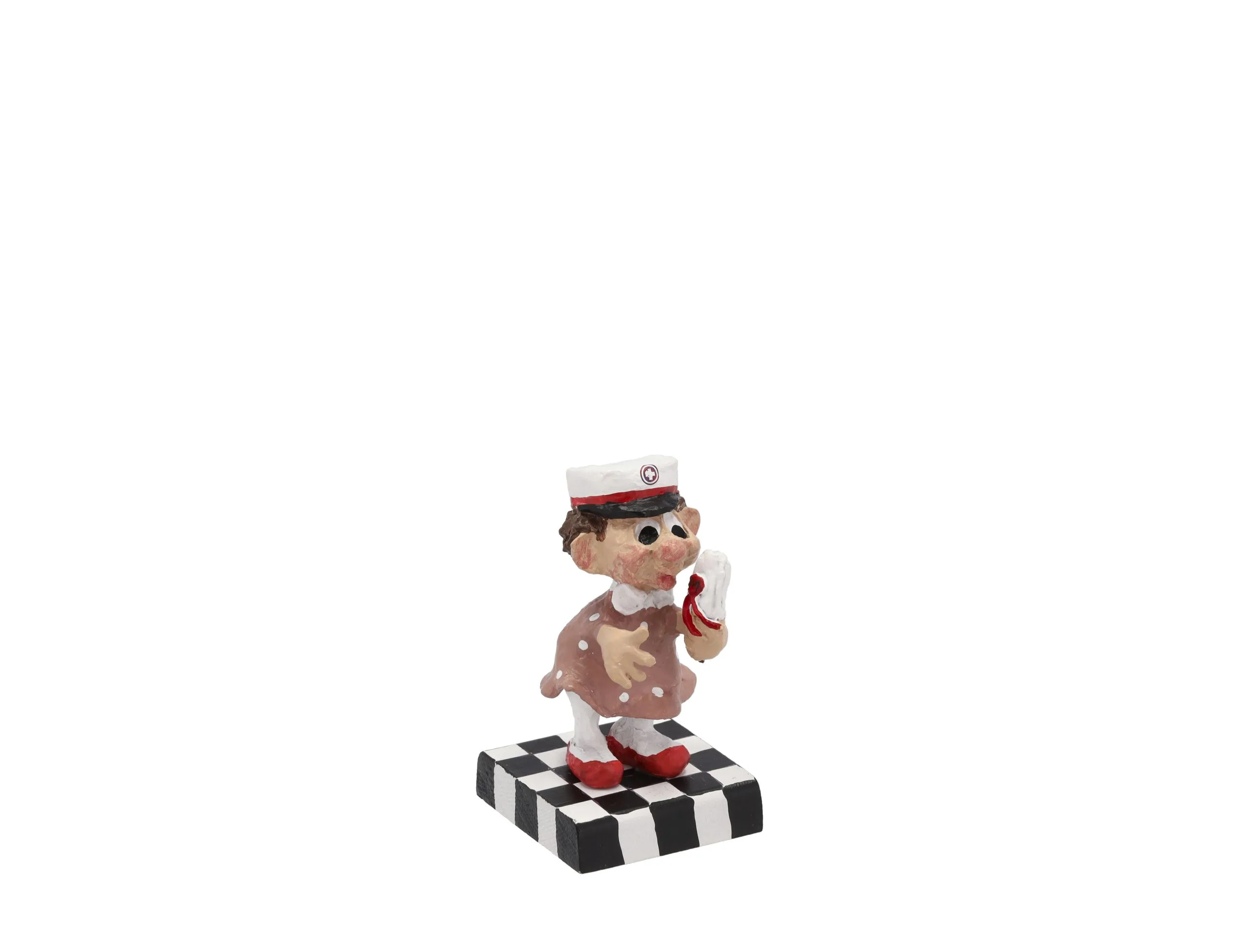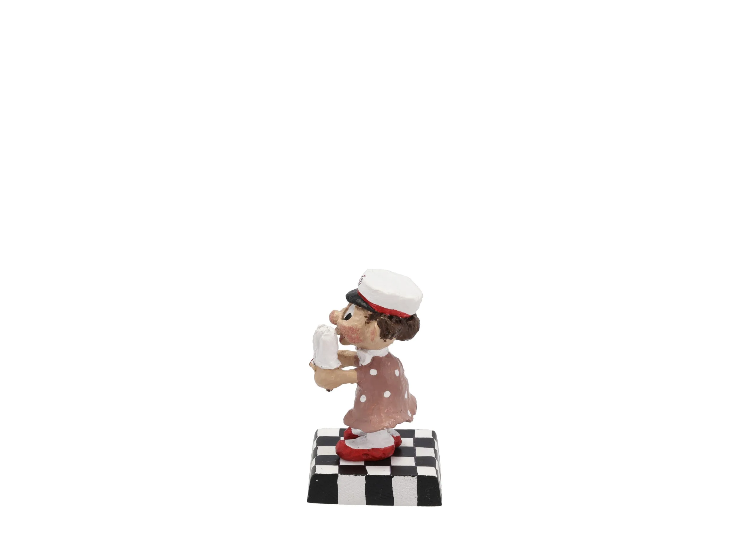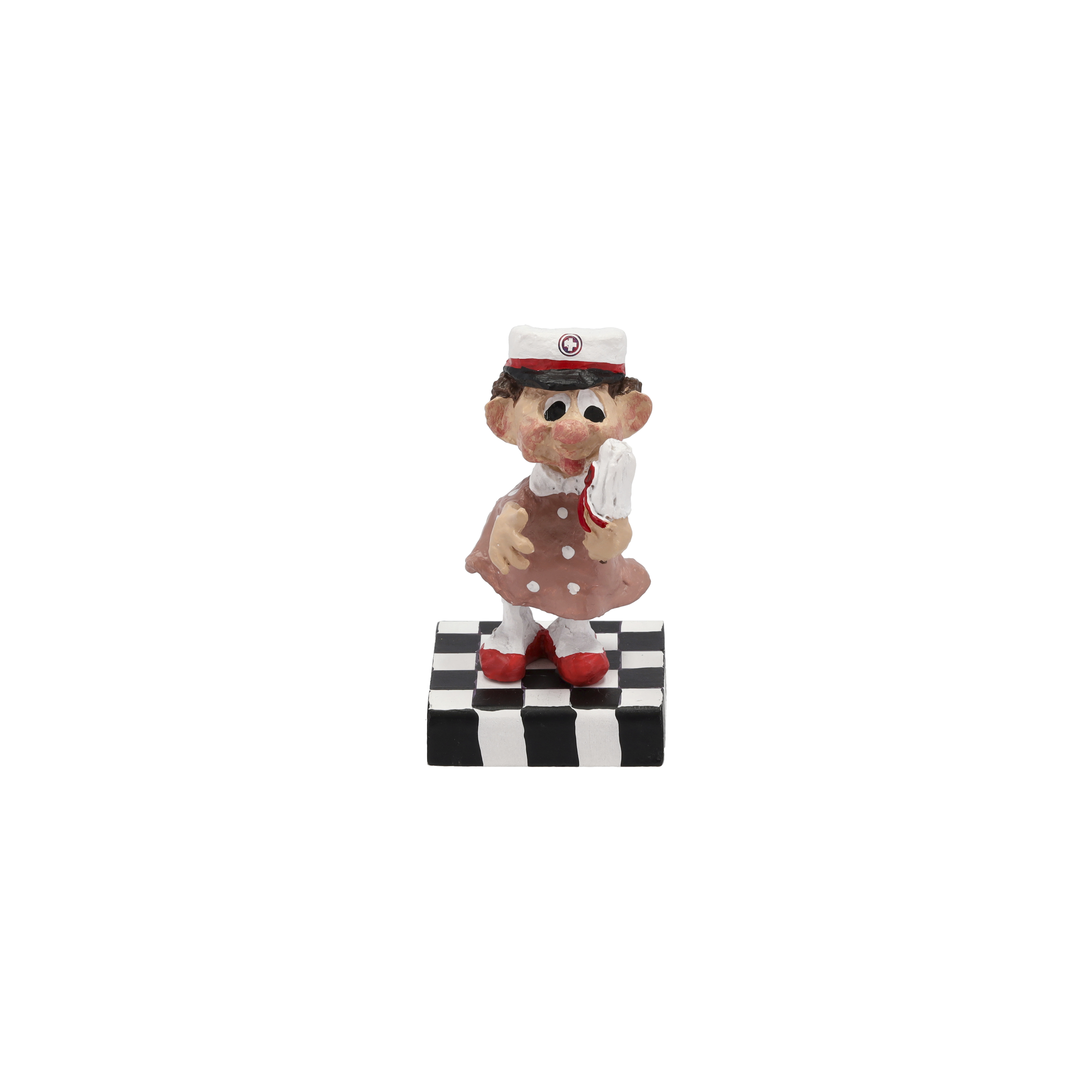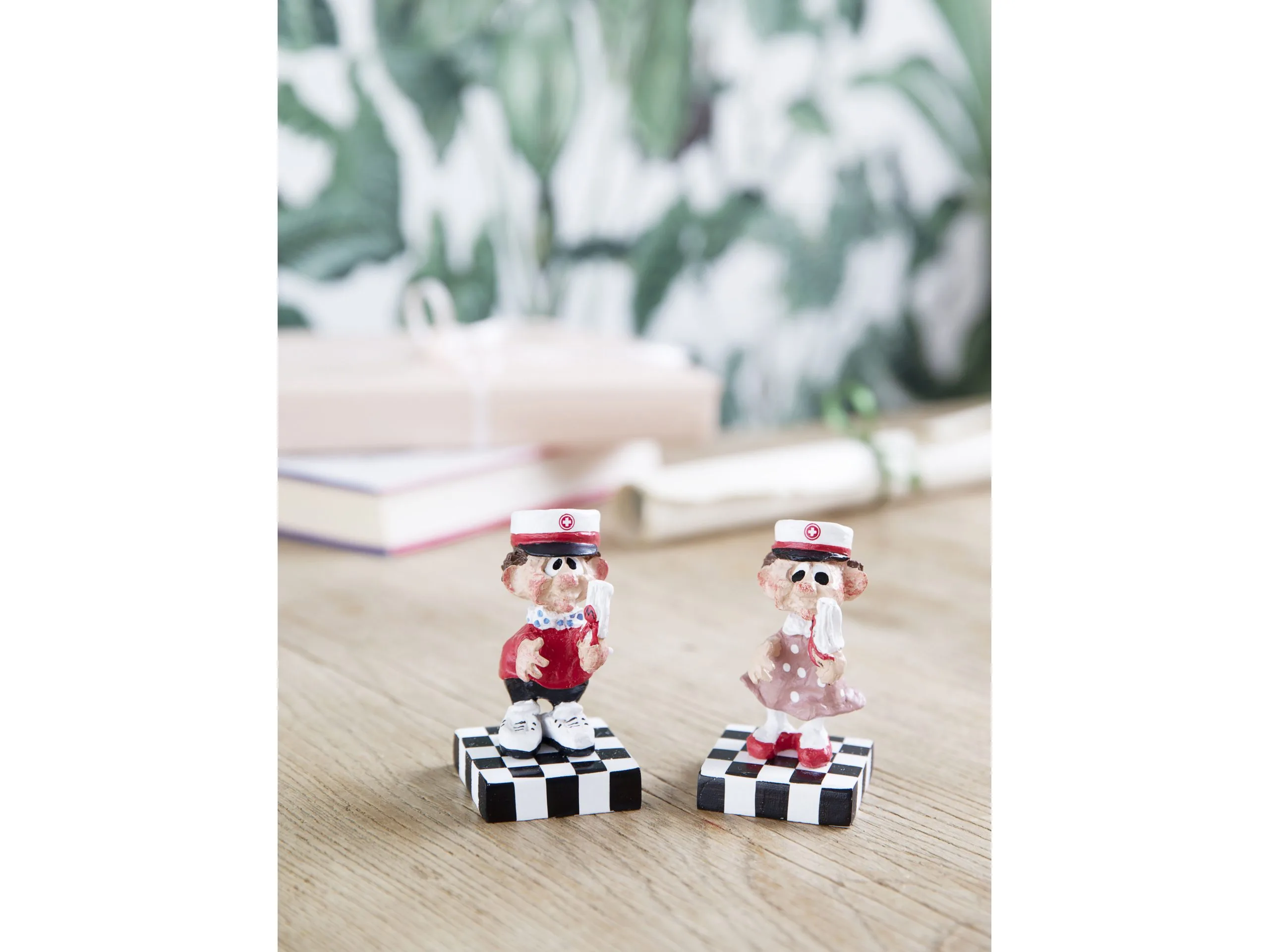Den røde hue sidder som den skal på den nyudklækkede student. Når studentertiden slutter, skal det markeres med en mindeværdig gave. Denne figur skal gives til en stolt student, som et minde for livet. Figuren er håndmalet og 9 cm høj.
