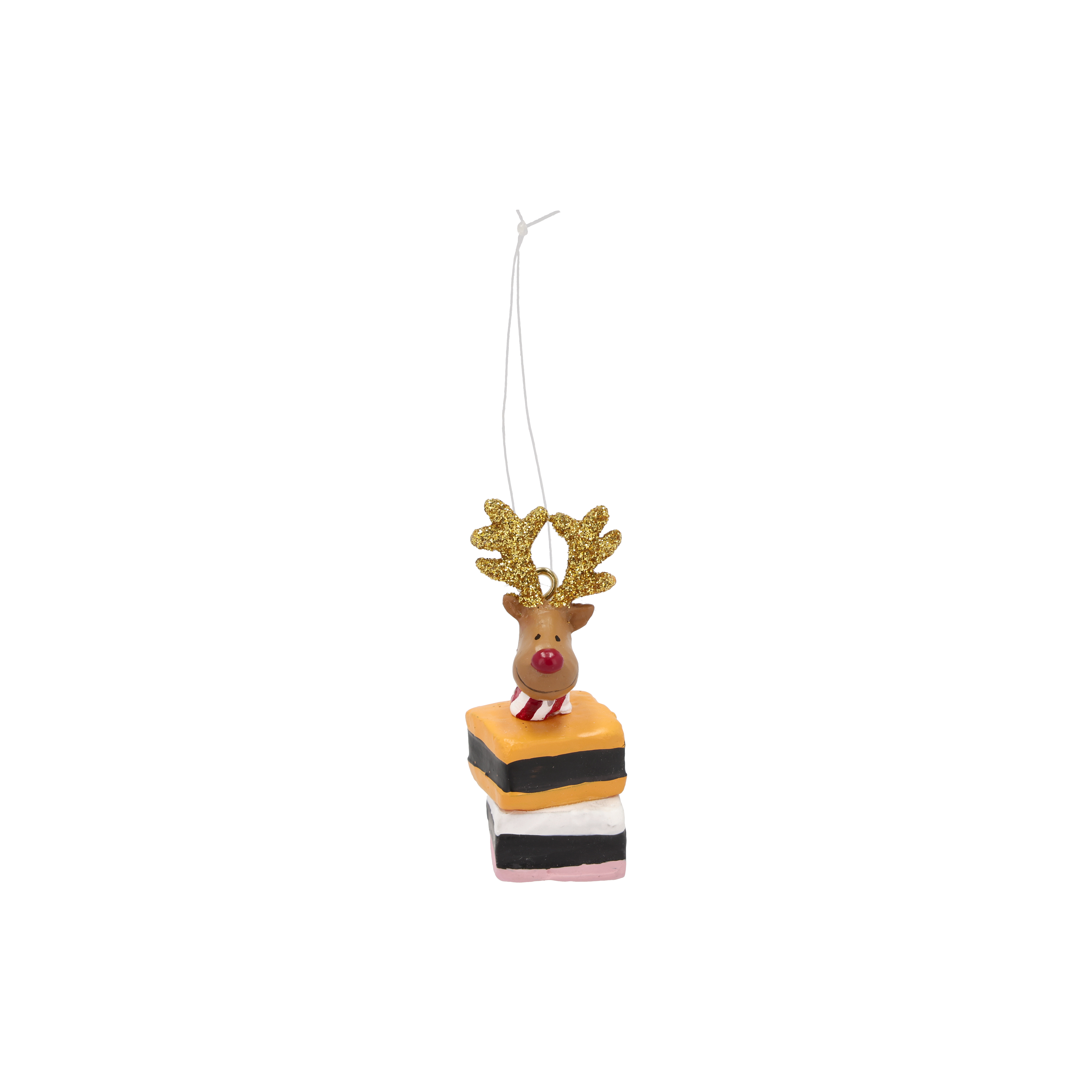 Kan du få øje på de gyldne gevirer og den røde næse mellem grangrenene? Rudolf titter forsigtigt frem fra et tårn af lakridskonfekt og sørger for at sende julestemning ud i rummet. Lad ham pynte på juletræet sammen med nisser, engle og andet juleophæng.
