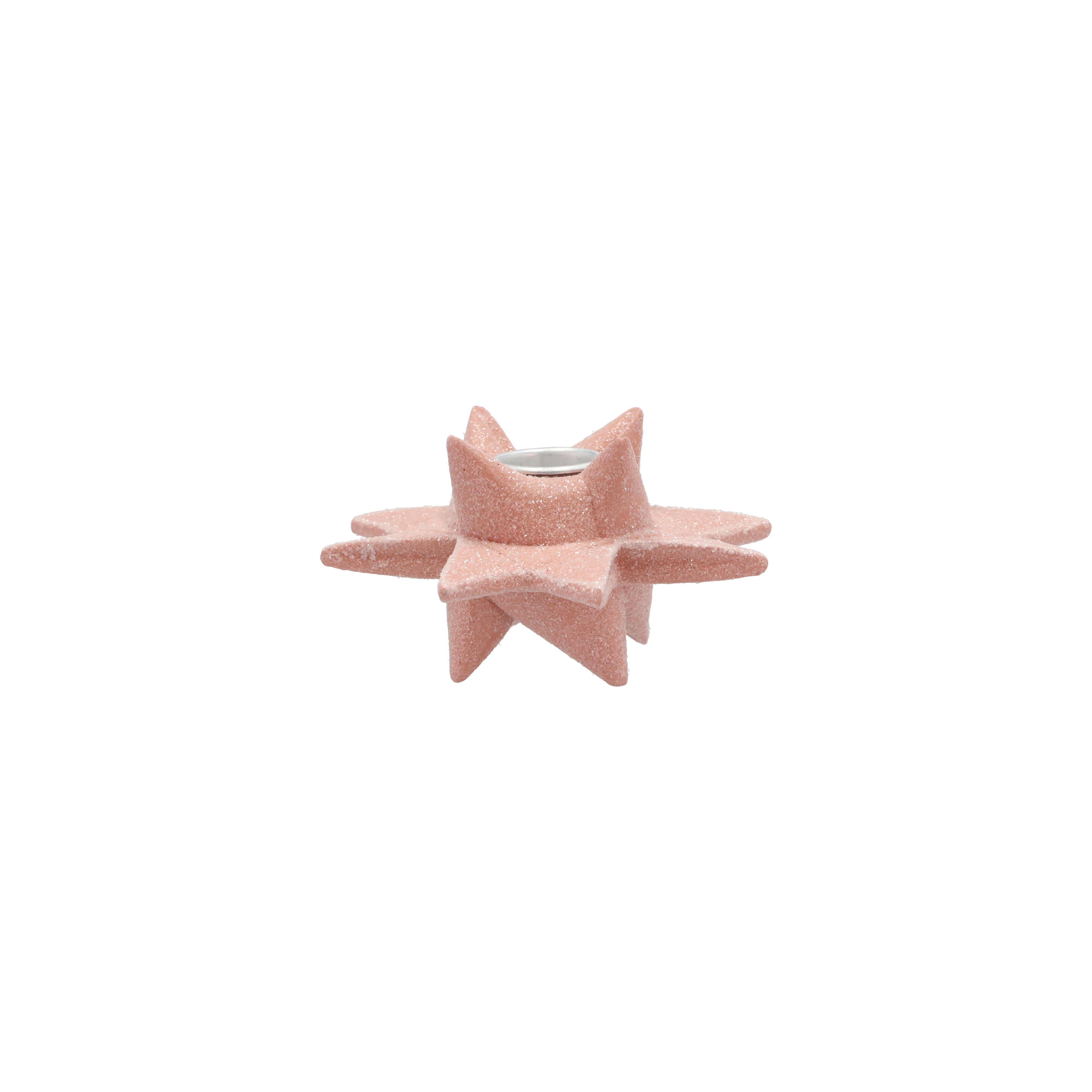 Sæt lys i de fine lysestager, der har samme form som de klassiske, flettede papirstjerner. De lyserøde glimmerstjerner er smukke og dekorative på bordet, reolen eller i vinduet, hvor du kan lade dem glimte og glimre. Til kronelys med dia. 2,1 cm.