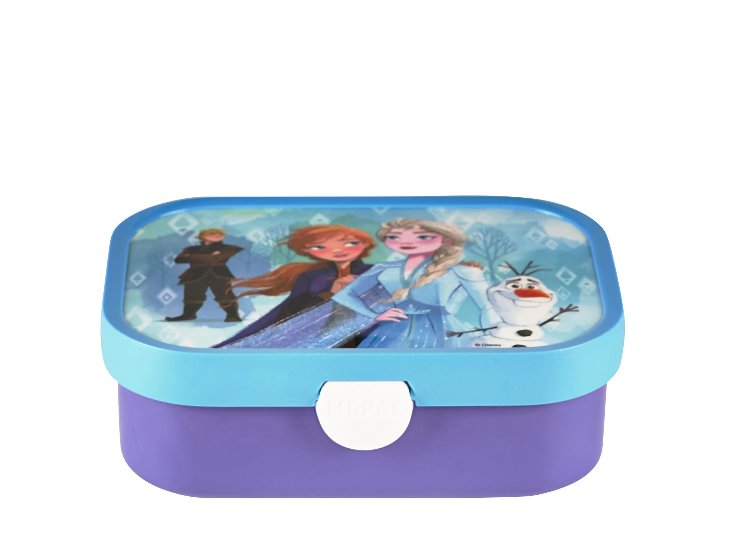 Madkasse med motiv fra Disneys kendte og elskede Frozen 2. Den har en ny, forbedret lukkemekanisme, som er endnu nemmere for børnene at betjene. Madkassen måler 17,5 x 13 x 6 cm og indeholder en lille gaffel og en aftagelig indsats med to små rum.