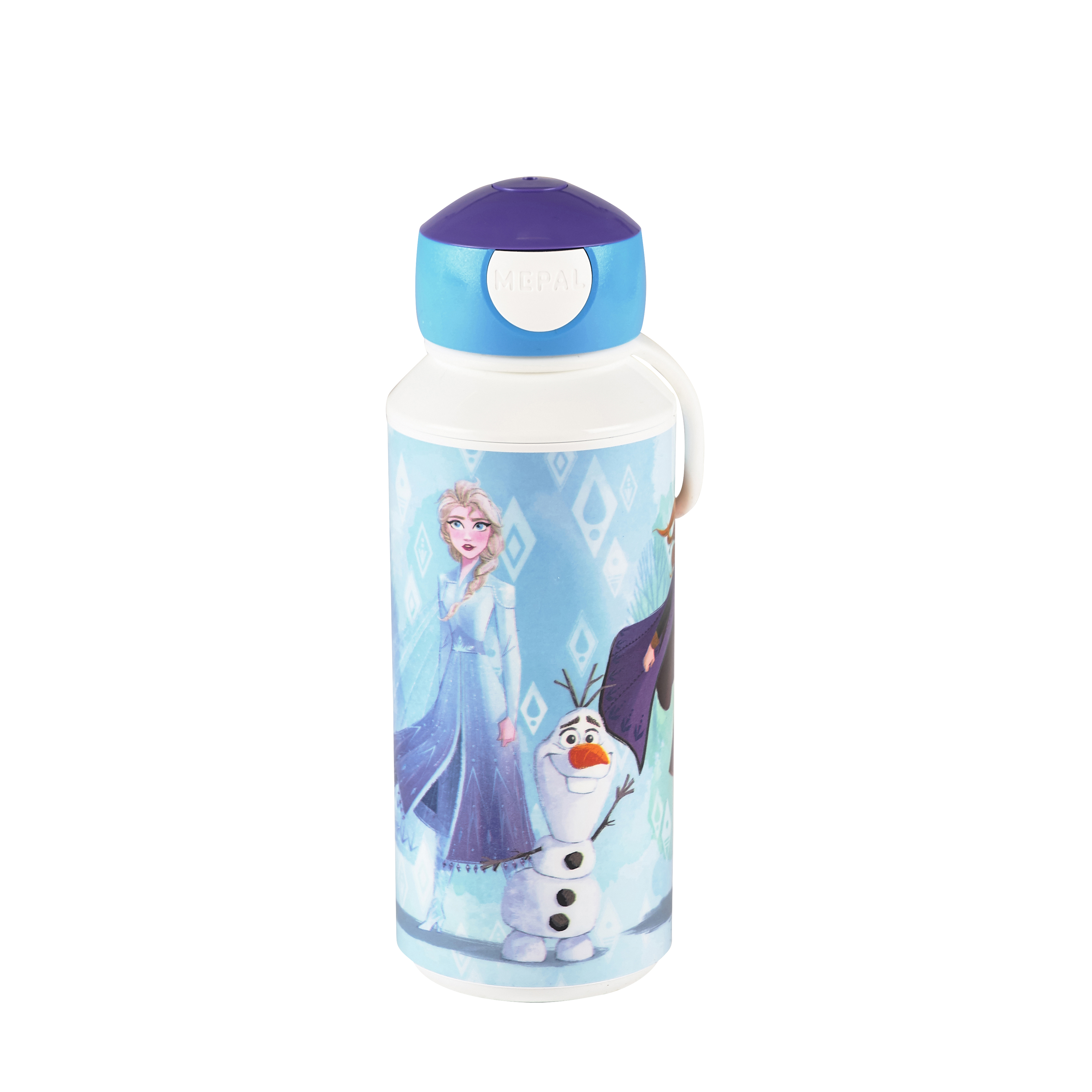 Mepal drikkeflaske med motiv fra den kendte og elskede Disneyfilm Frozen 2. Den kendte, robuste drikkeflaske har fået silikonestrop, større flaske og et nyt forbedret pop-up system, der er endnu nemmere at skille ad og rengøre. 400 ml.