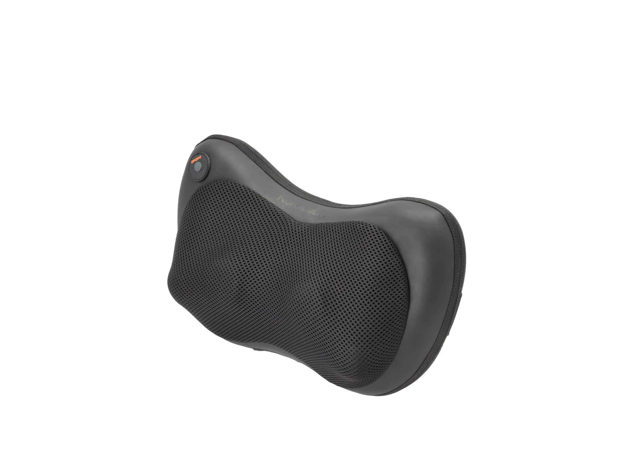 De fire roterende massagehoveder giver en dybdegående massage. Varmefunktionen har en beroligende effekt på dine trætte muskler og øger blodcirkulationen. Ergonomisk og kompakt massagepude, der passer perfekt bag nakken og følger kroppens naturlige kurver. Massagepudens ydre PU-materiale kan let tørres af. Tilsluttes strøm via adapter eller lighterstik.