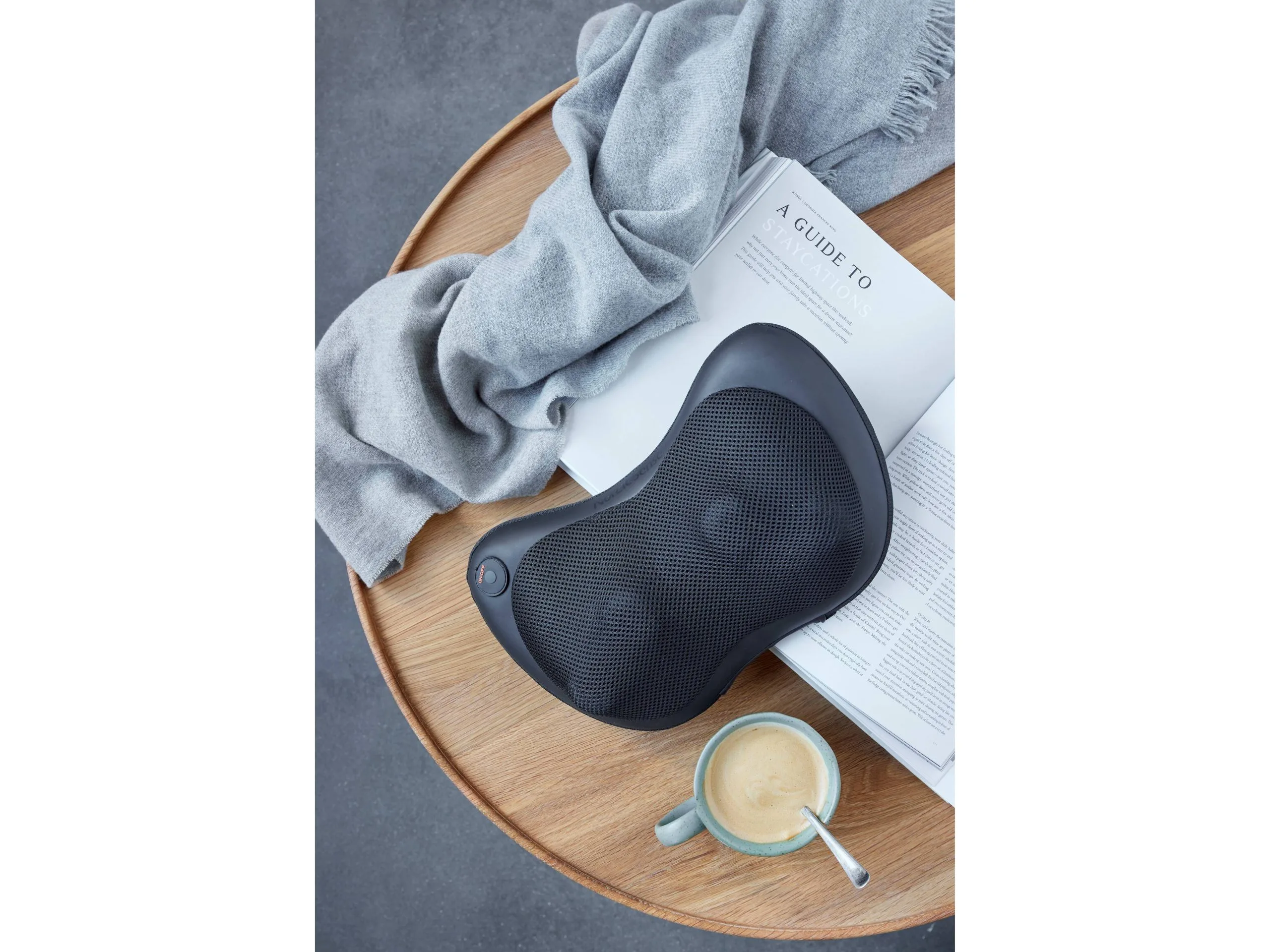Massagepuden lindrer ømhed i dine muskler med cirkulære og dybdegående tryk. Pudens afslappende Shiatsu massage kan bruges til spændinger i nakke, ben og ryg. Slukker automatisk efter 15 minutter. Varmefunktion kan slås til og fra efter behov.