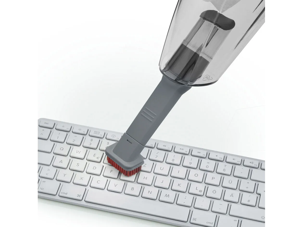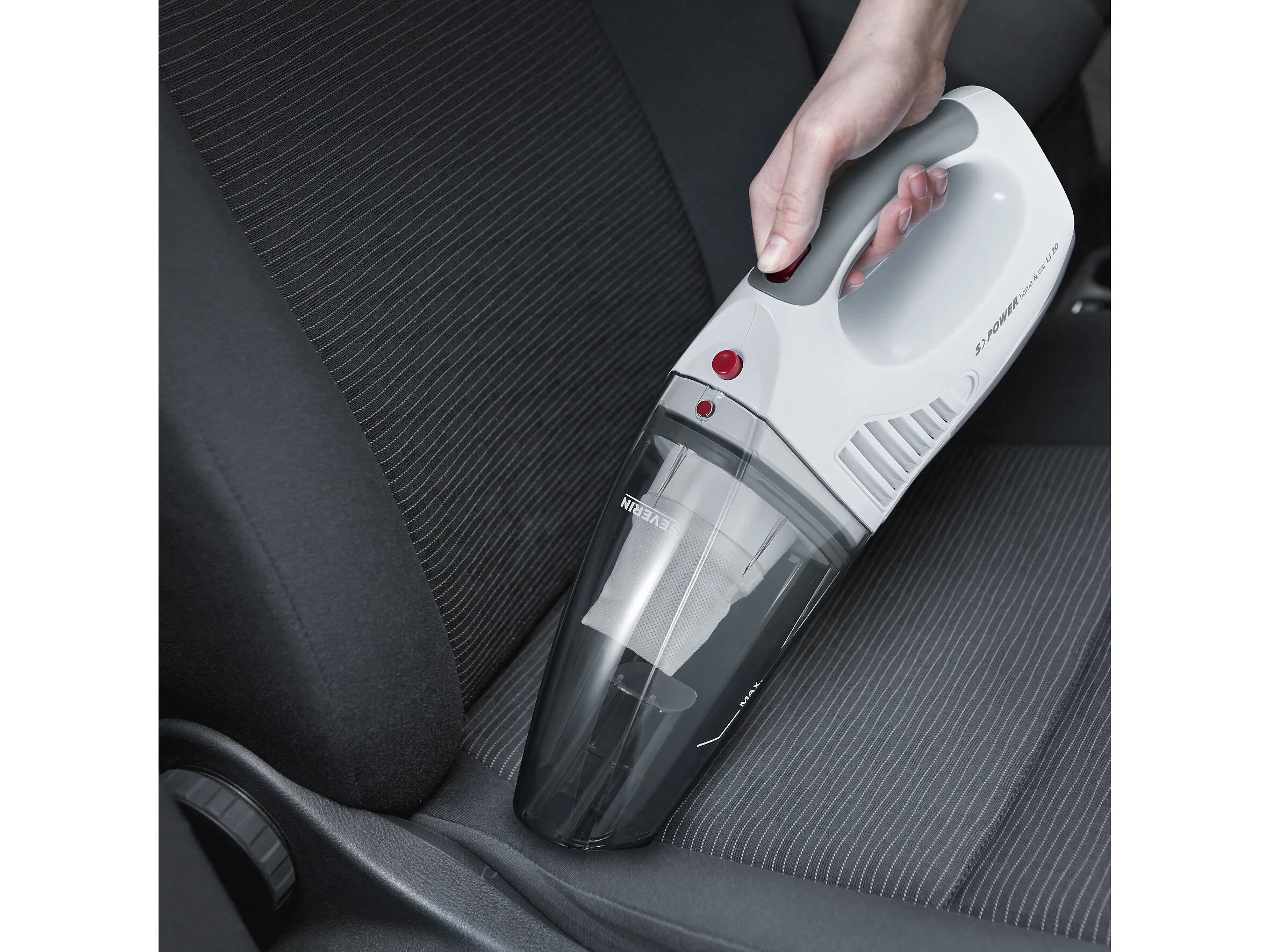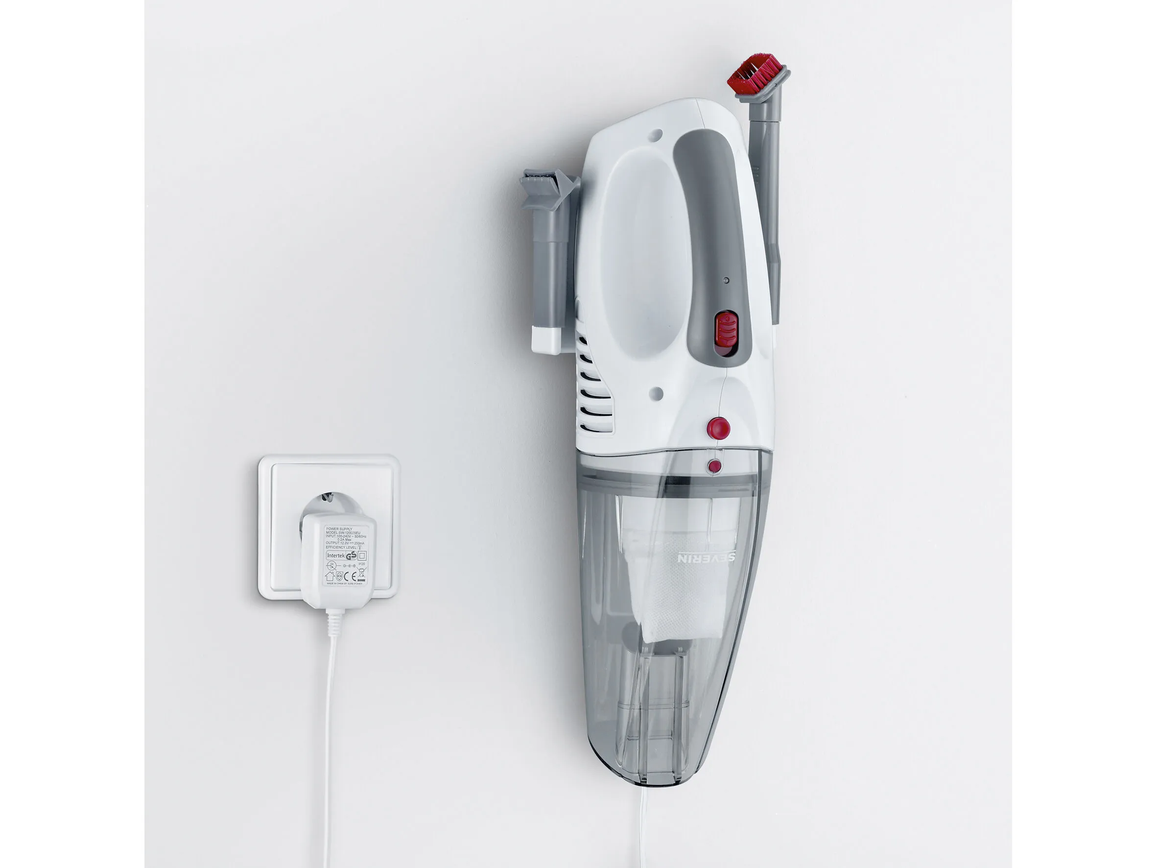 Håndstøvsugeren er meget fleksibel og nem at bruge i fx bilen, campingvognen eller andre steder hvor pladsen er trang. Wet & Dry funktion gør det muligt at suge op til 100 ml væske, og støvbeholderen kan rumme 200 ml støv og snavs. Der er ikke brug for ekstra støvsugerposer, da den fyldte støvbeholder nemt kan tømmes direkte i skraldespanden. Håndstøvsugeren har også et permanent filter, der er let at rengøre og ikke kræver udskiftning. Indikatorlampen lyser når støvsugeren skal lades op, og en fuld opladning tager ca. 9 timer. 12 V opladerkabel og integreret sikkerhedsbeskyttelse. Ladestation, vægbeslag og skruer medfølger til opbevaring af støvsugeren, når den ikke er i brug.
