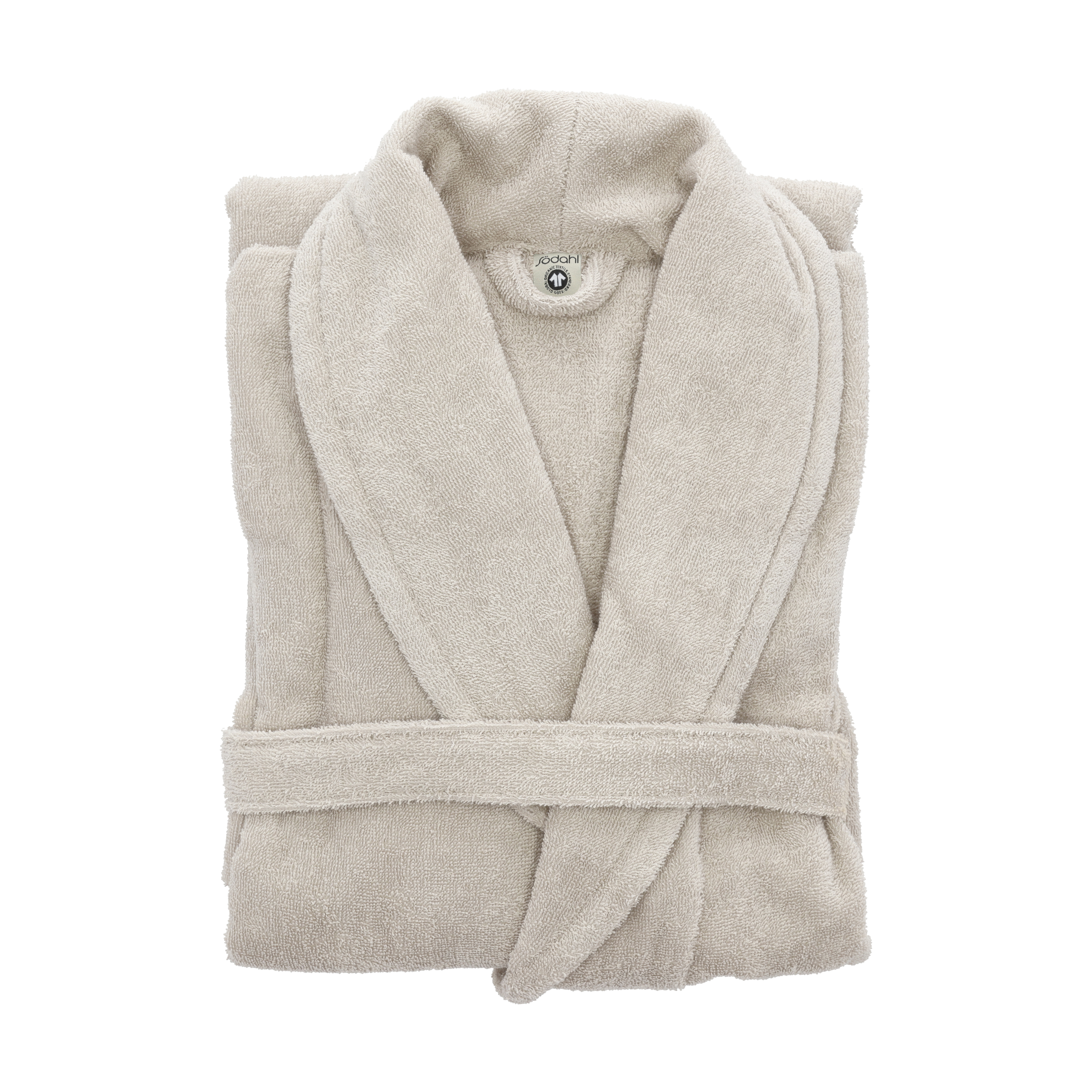 Vamset og ekstra lang badekåbe, som indbyder til hygge, inden dagen langsomt begynder. Kåben er designet med unisex pasform og har krave, to lommer og bindebælte. Længde 116 cm i str. S/M. De kartede, økologiske garner er ultrabløde. 360 gsm.