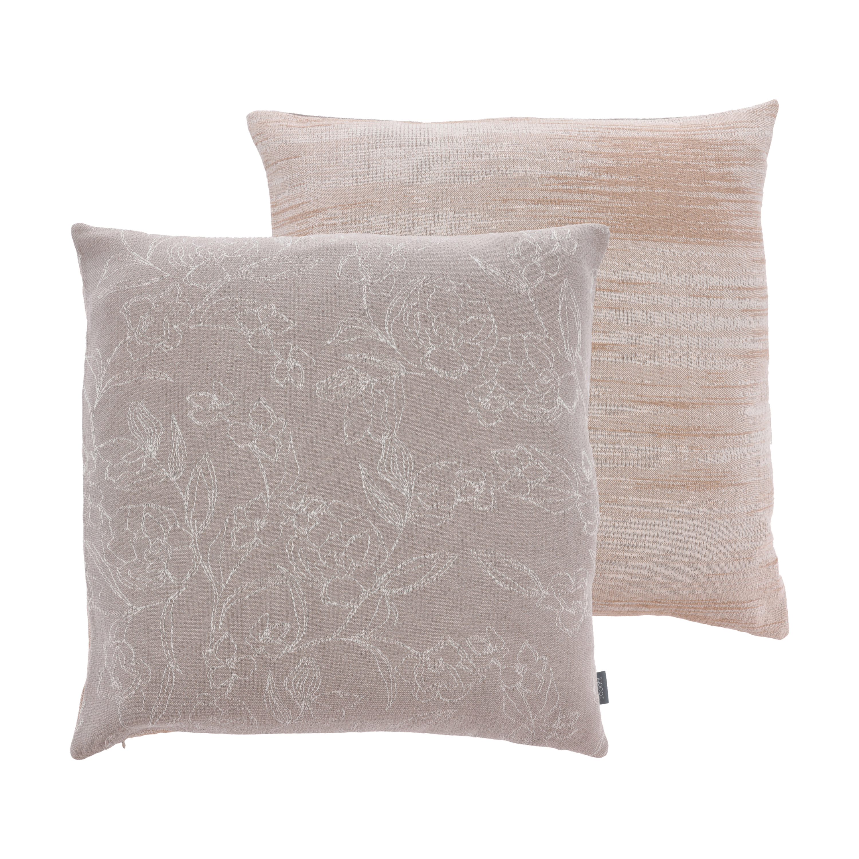 Disse simple blomster, tegnet i én enkelt streg, udgør et fint, flydende og feminint mønster. Den håndtegnede stil og de ultrafine linjer på den ensfarvede baggrund er beroligende for øjet. Både pude og plaid har en doubleface-effekt, bagsiden er et smukt gradueret melange motiv.