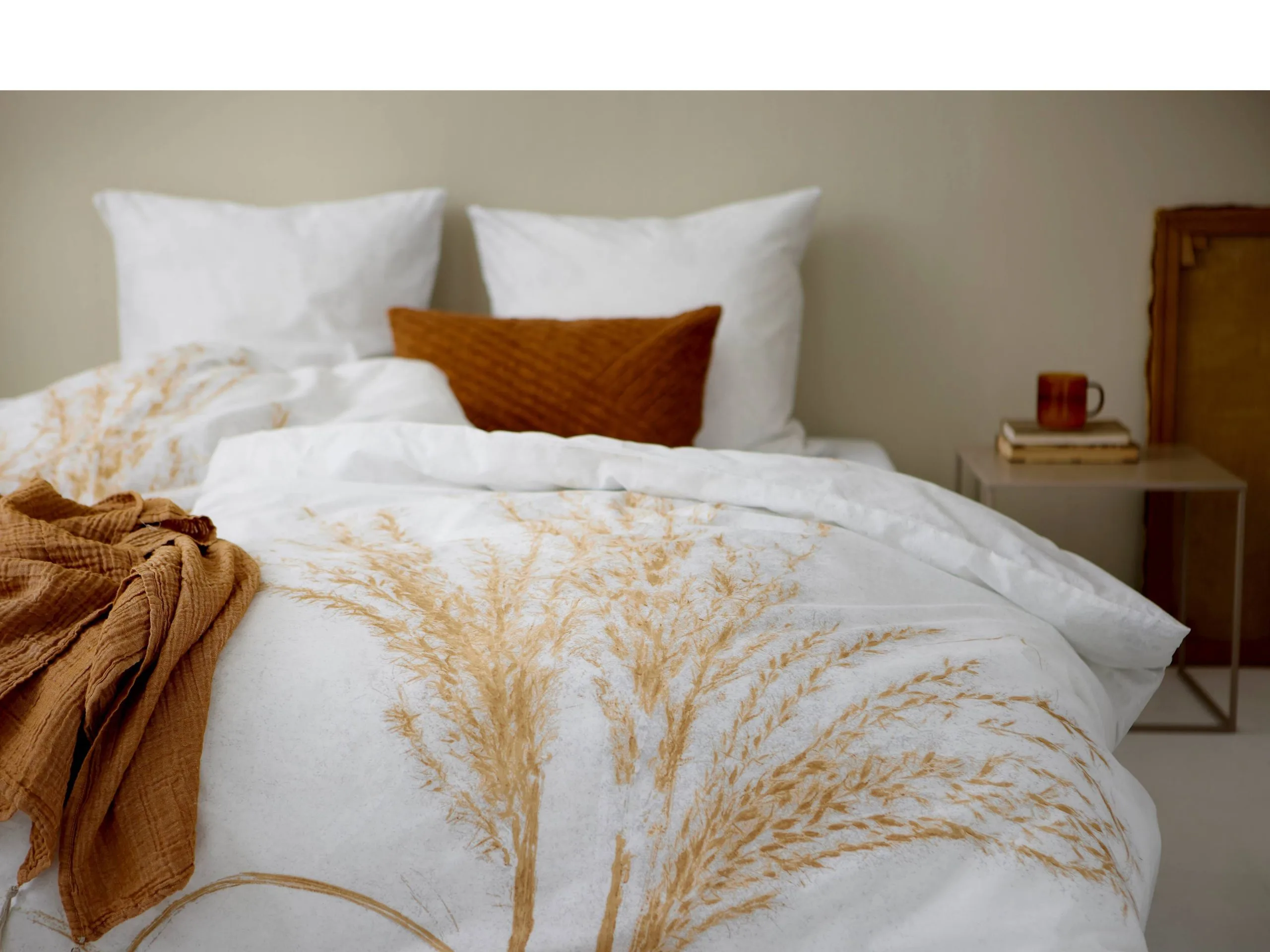 Silvergrass tilføjer soveværelset en ny naturlighed med sit botaniske motiv, hvor aftryk af friske planter og græsser leder tankerne hen på vindens lette susen gennem græs, smukke oplevelser i naturen og små glimt af lykkelige havestunder.