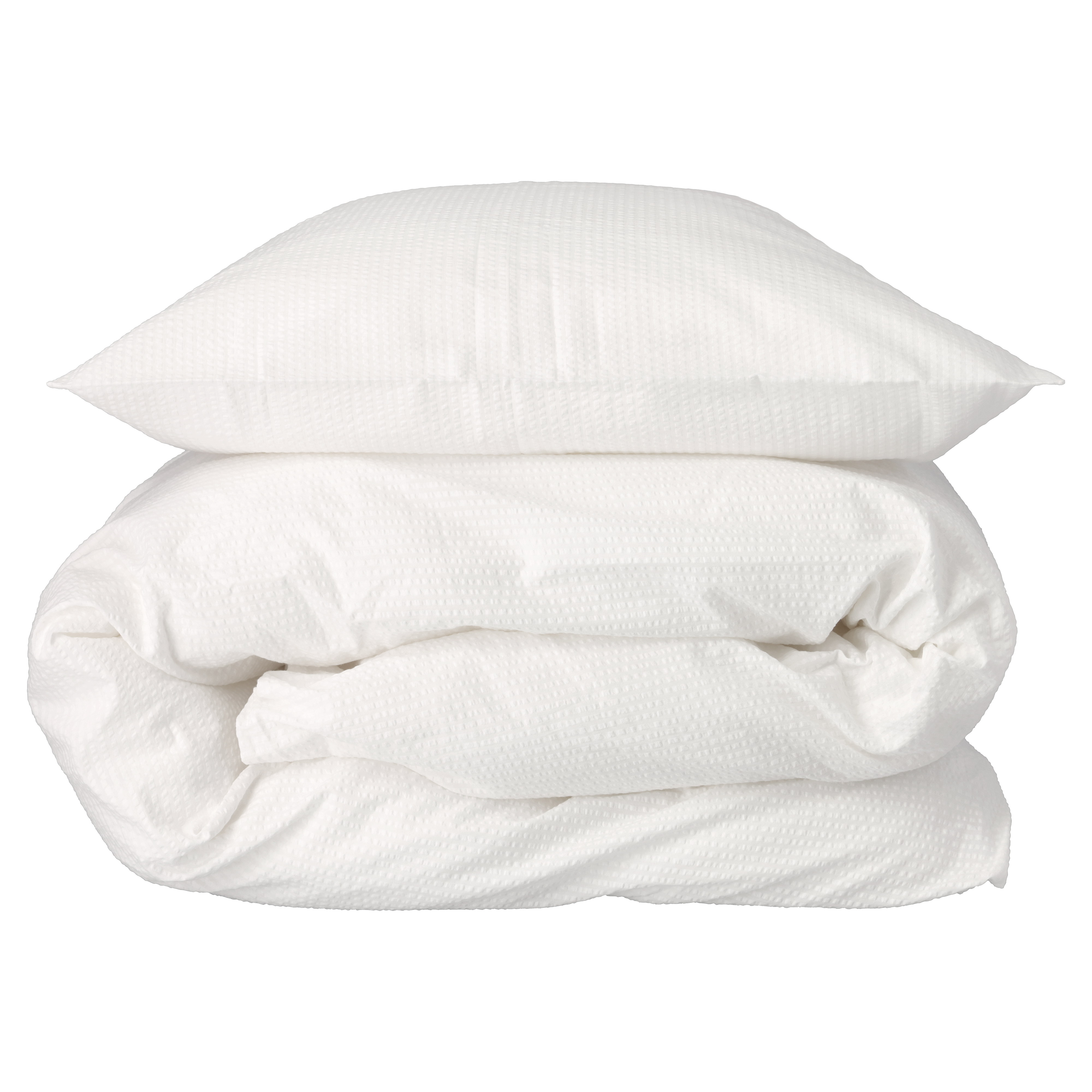 100 % økologisk bomuld, bæk og bølge, med kuvertlukning i pudebetræk og knapper i dynebetræk