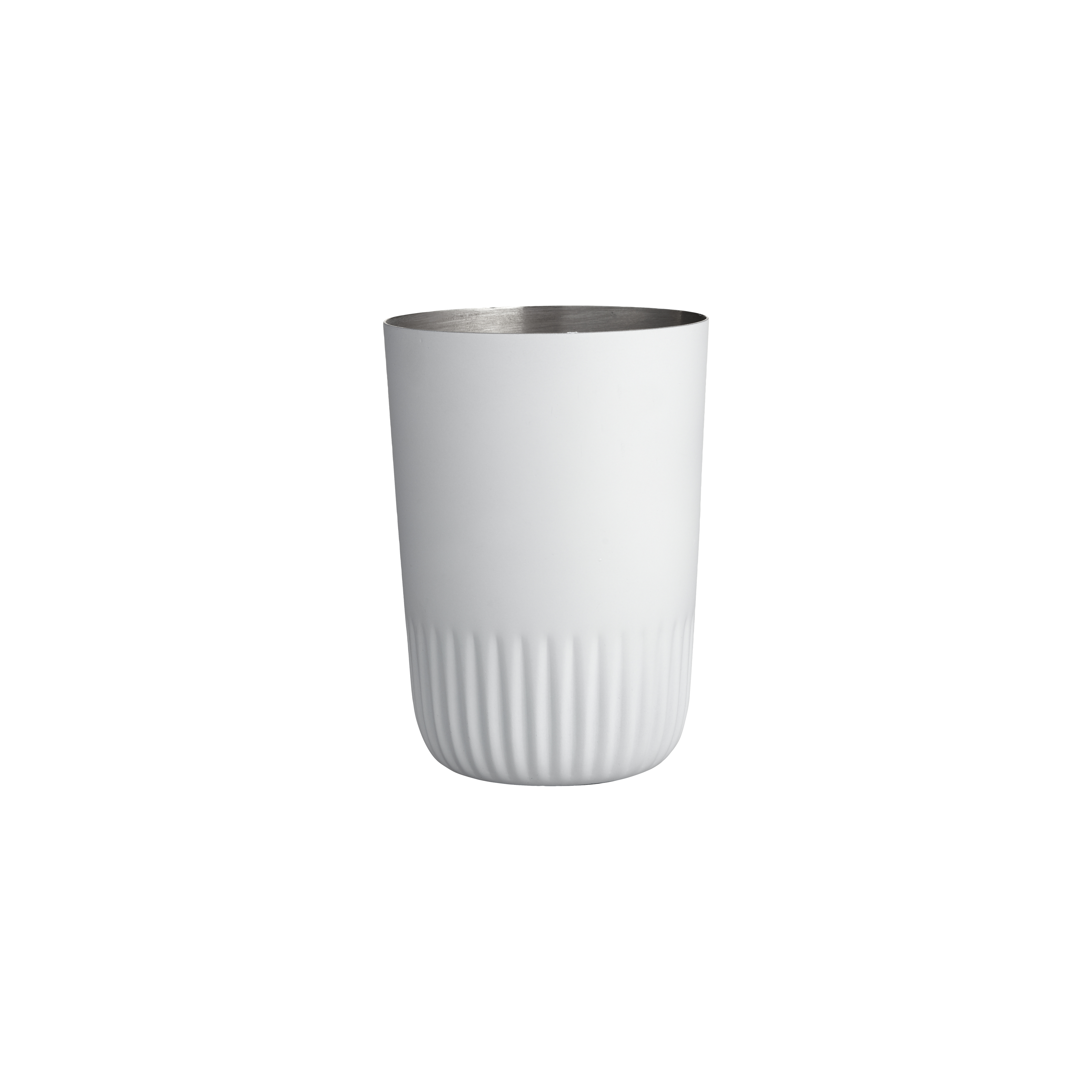 Plisseringerne i bunden af produkterne, de rene enkle former og kombinationen af matte farver og børstede ståldele spiller smukt sammen. Stilen er tidløs og holdbar.