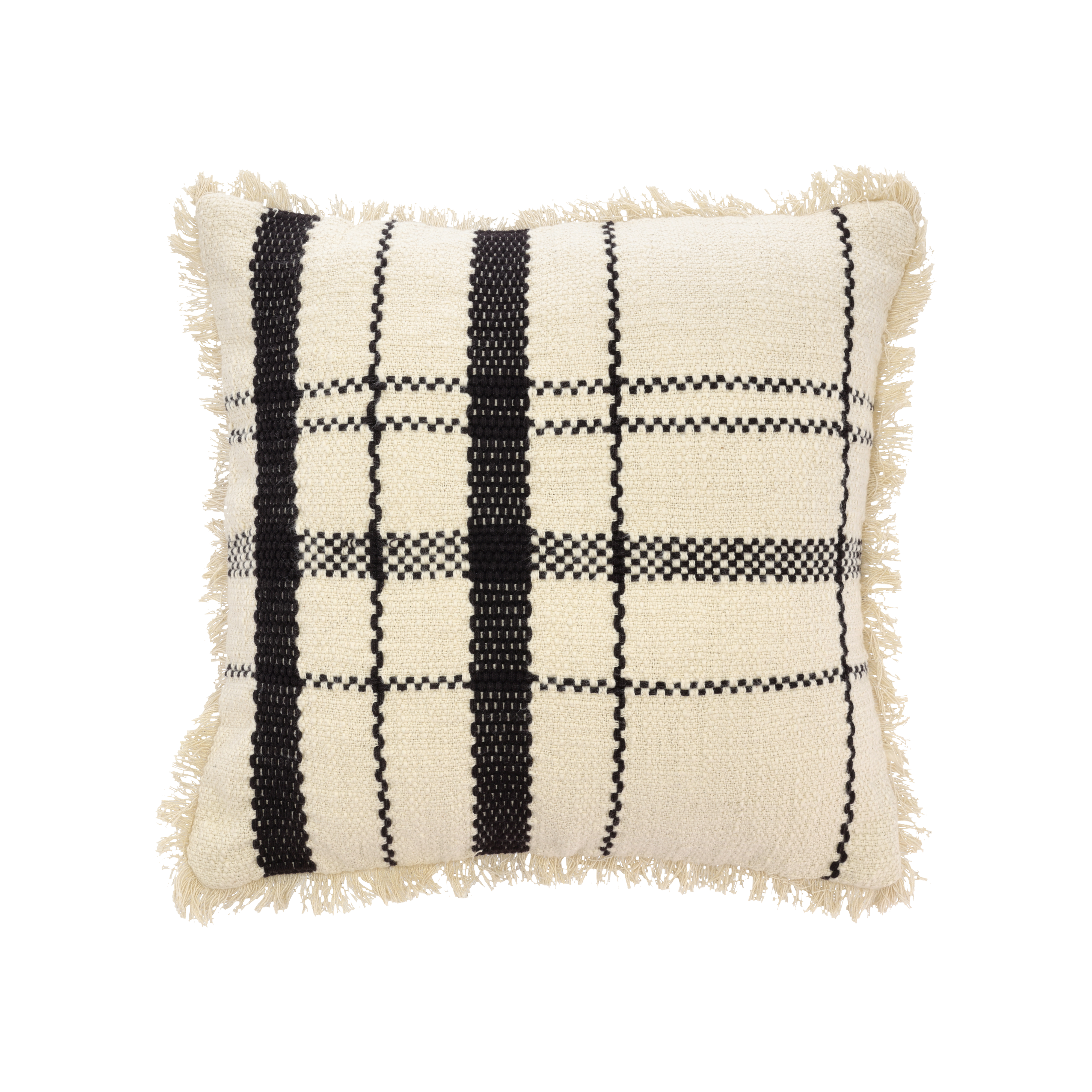 Urban puden er et nyt bud på tidløse tern. Mønsteret er vævet i kraftigt flammégarn, og puden har frynser på siderne. De store tern og neutrale farver går perfekt i spænd med i den minimalistiske æstetik.