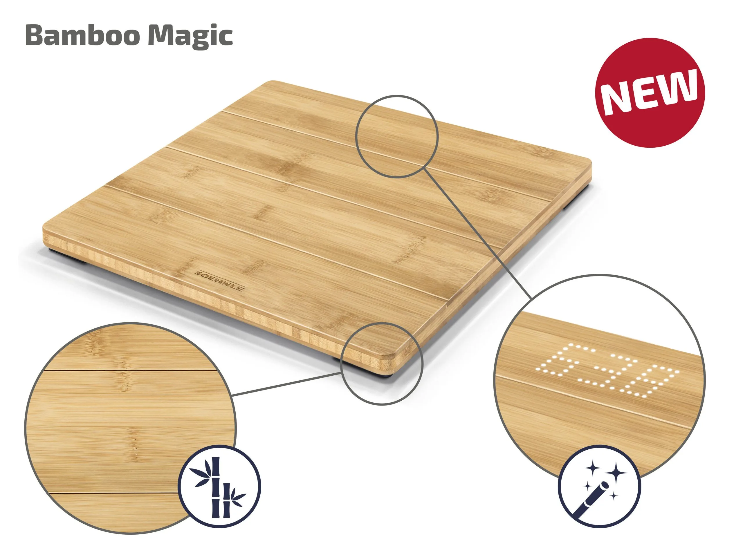 Personvægten Style Sense Bamboo Magic har en vejeflade lavet af ægte bambus, hvilket giver en behagelig varm følelse under fødderne, når du træder på vægten. Den naturlige overflade er hurtig og nem at rengøre, hvilket gør den absolut hygiejnisk.