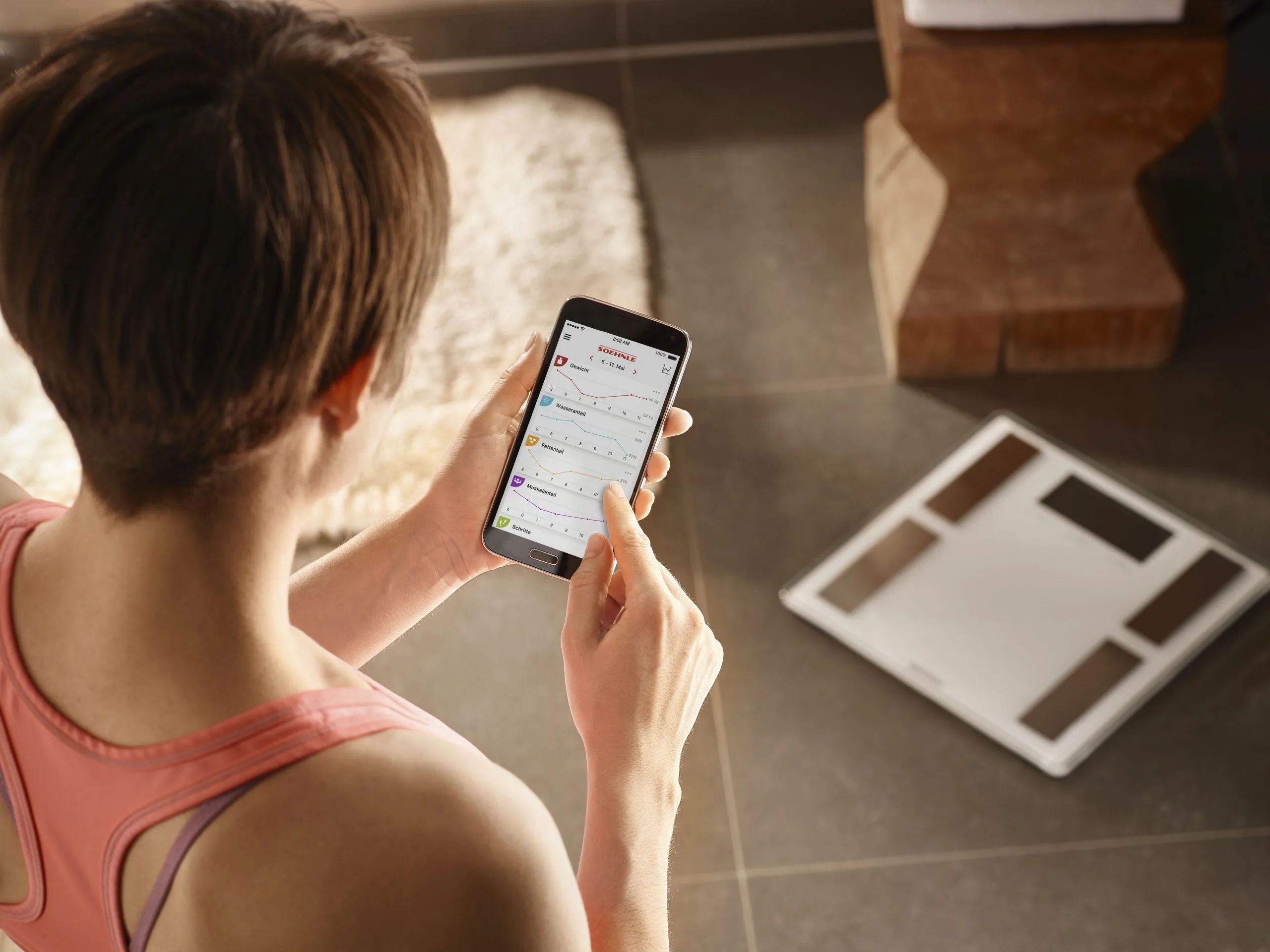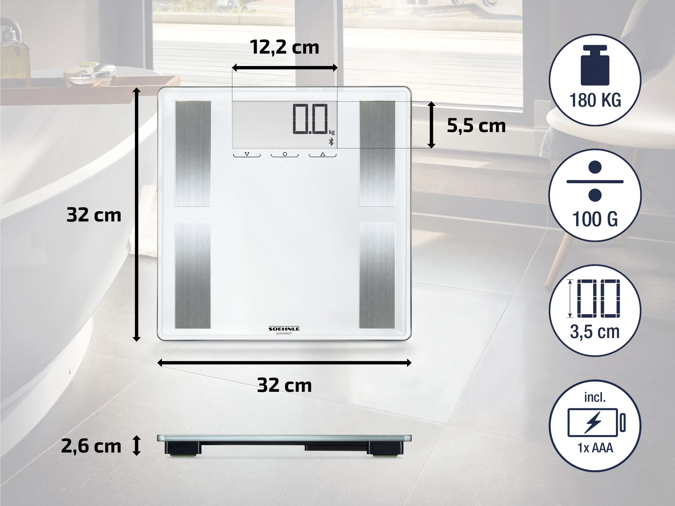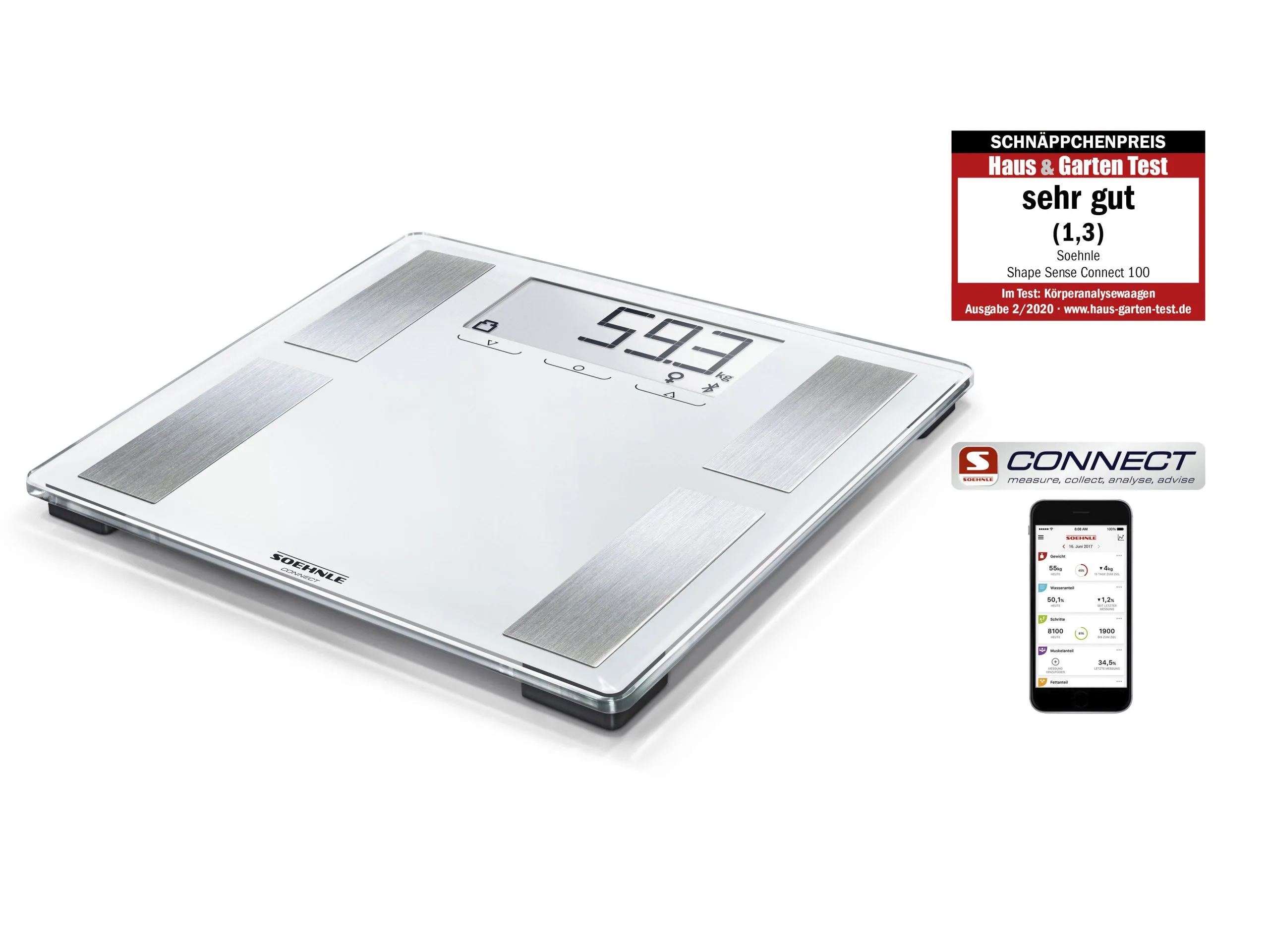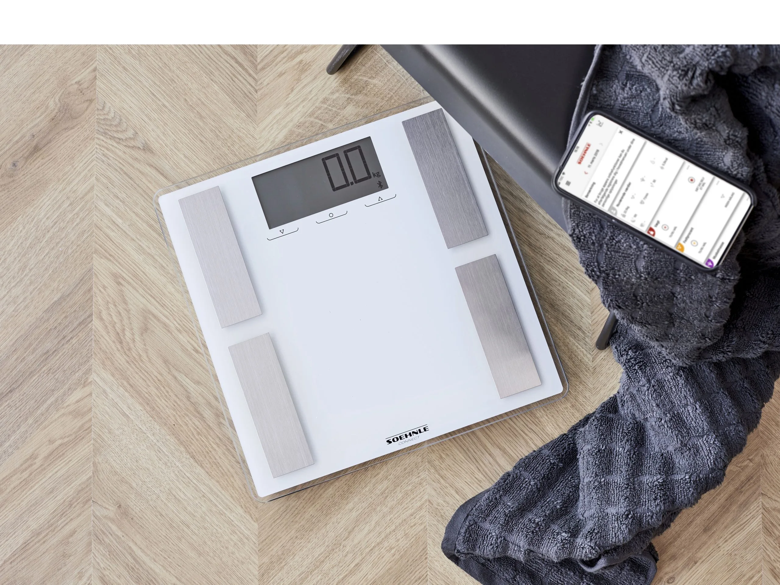 Vægten sender dine målinger til Soehnles egen S-Connect app, der er tilgængelig til iOS og Android, hvor du blandt andet kan indtaste din ønskevægt og få et nemt og overskueligt overblik. Du kan se din vægt, fedt- og væskeprocent, analyse af din muskelmasse og det anbefalede daglige kalorieindtag, forskellen i forhold til sidste vejning og hvor langt du har igen til ønskevægten. Du kan også se din BMI og forskellen i forhold til det gennemsnitlige BMI.