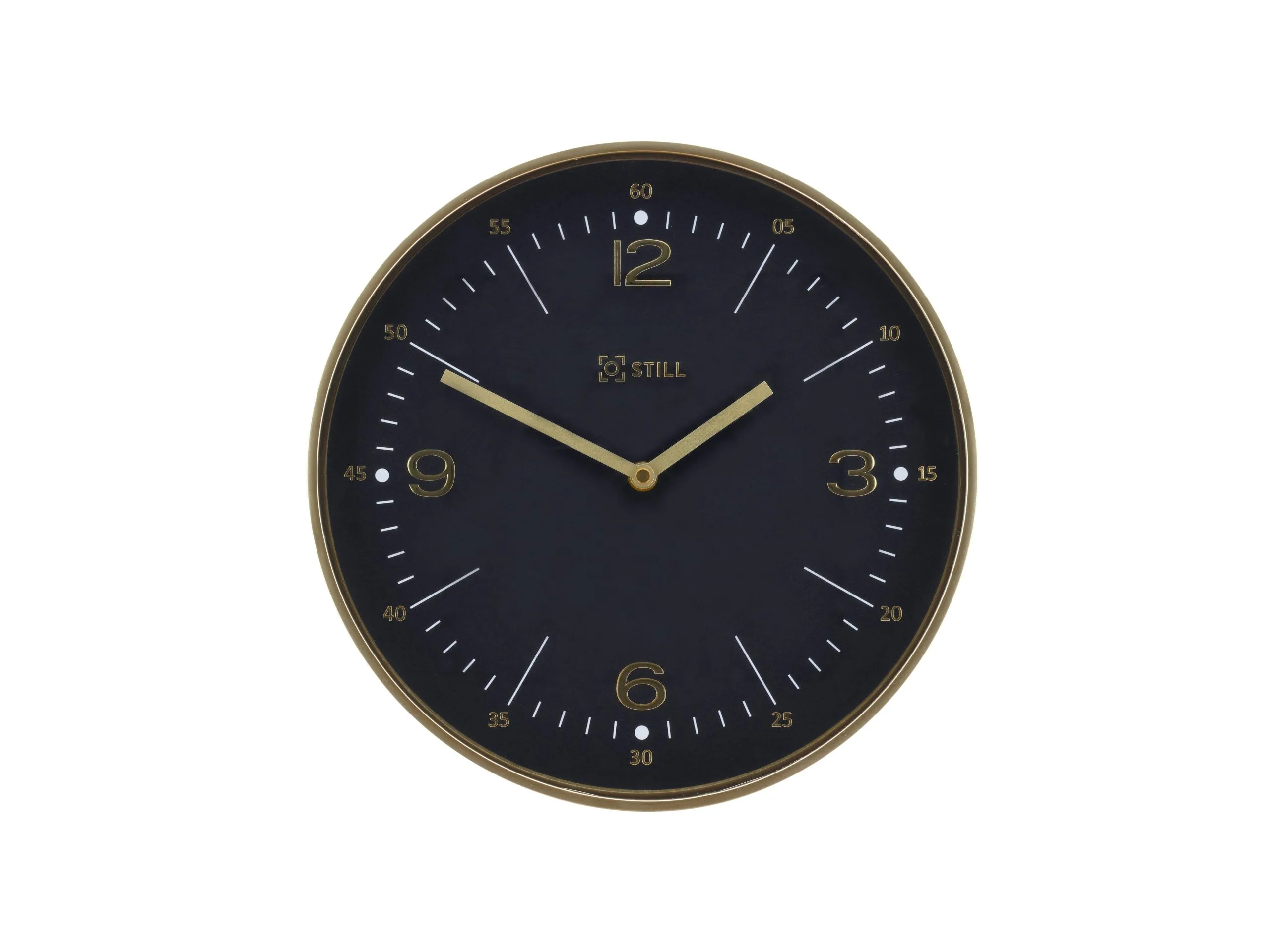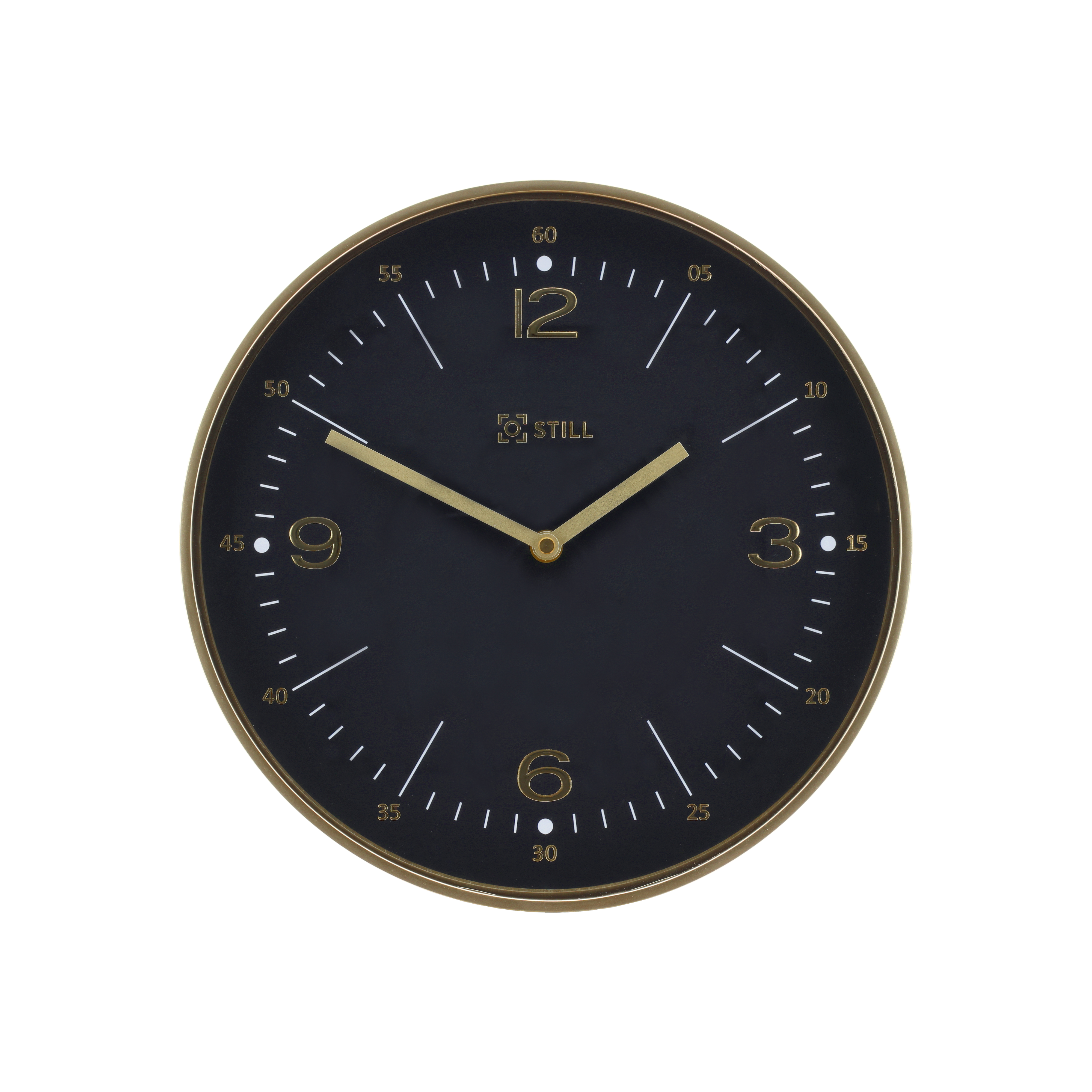 Vægur, dia. 30 cm, i klassisk design. Med sort urskive, guldfarvede tal og visere samt hvide stregmarkeringer. Urkassen er i guldfarvet plast. Uret har kvarts-urværk og flydende sekundviser, hvilket betyder at viseren bevæger sig jævnt og lydløst rundt i stedet for at ’klikke’ et sekund ad gangen. Bruger 1 x AA batteri (medfølger ikke).