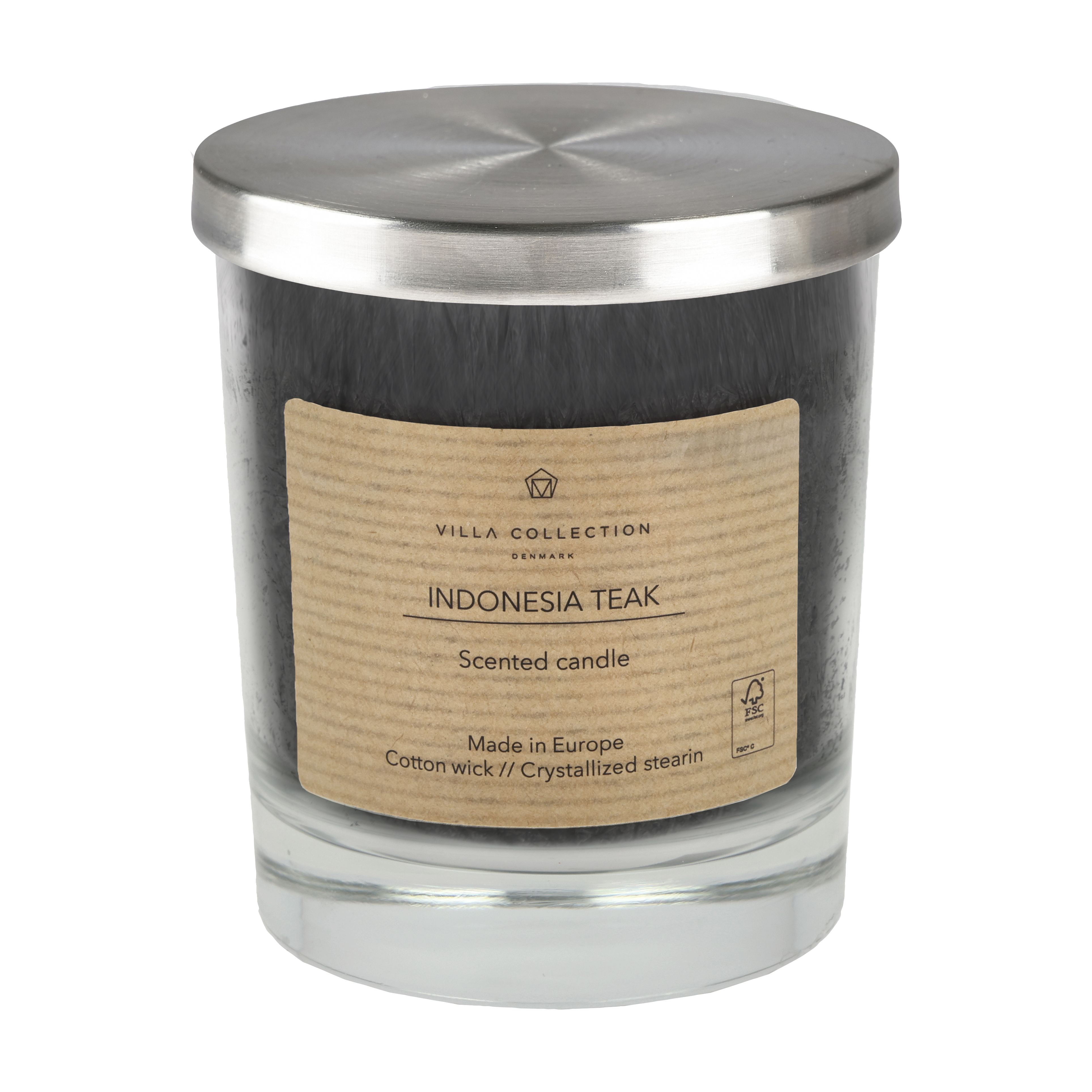 Duftlys i glas med metallåg fra Villa Collection Denmark. Lyset er lavet af krystalliseret stearin og spreder en dejlig duft, hvor end du placerer det. Du kan f.eks. bruge det til at skabe en skøn spastemning på badeværelset.