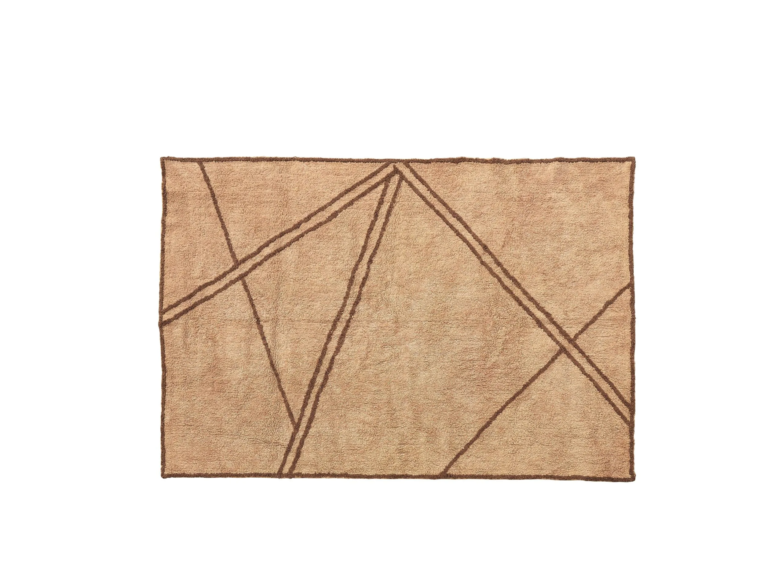 Smukt tæppe med frynser og et grafisk mønster, der tilfører rummet en behagelig og afslappet følelse.
