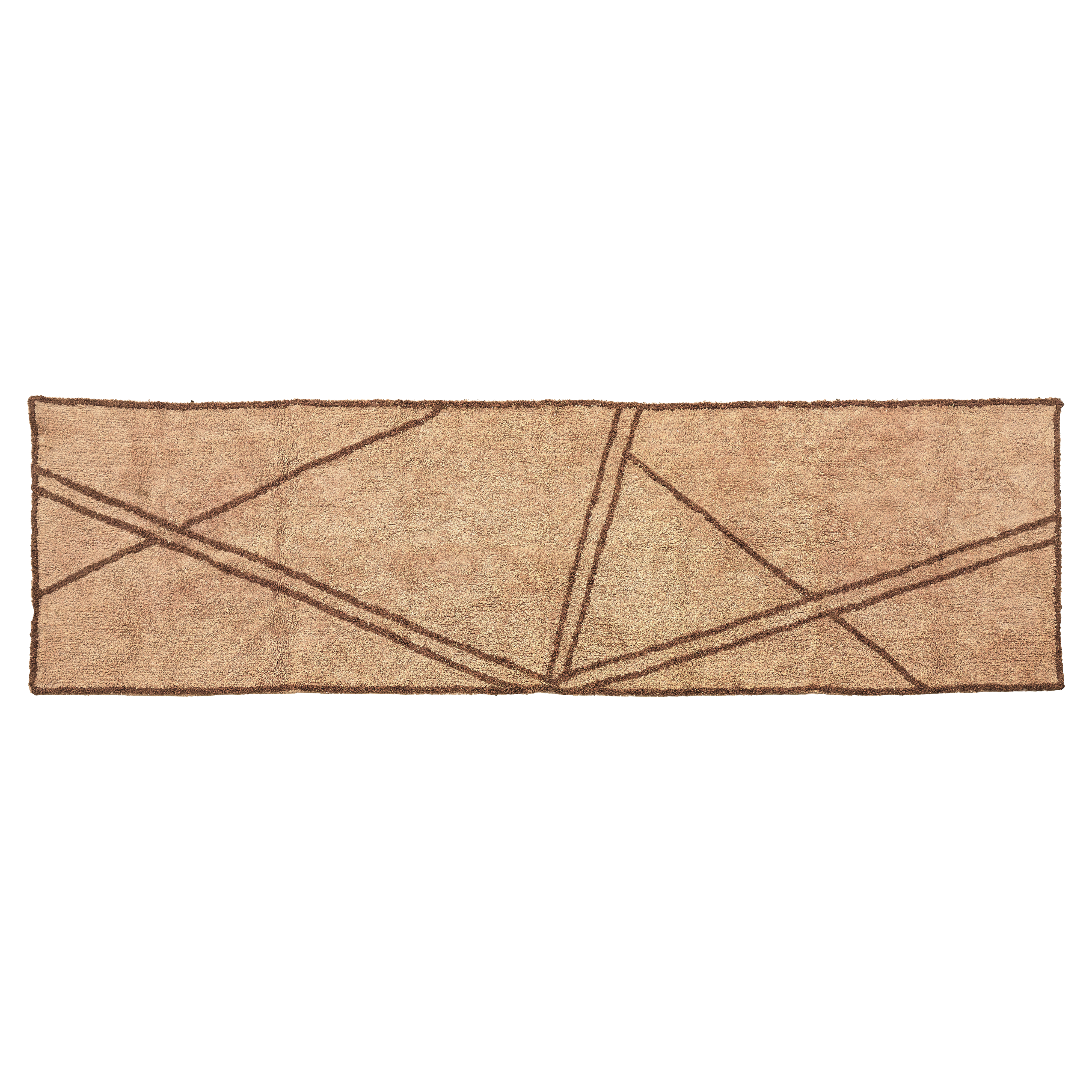 Smukt tæppe med frynser og et grafisk mønster, der tilfører rummet en behagelig og afslappet følelse.