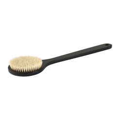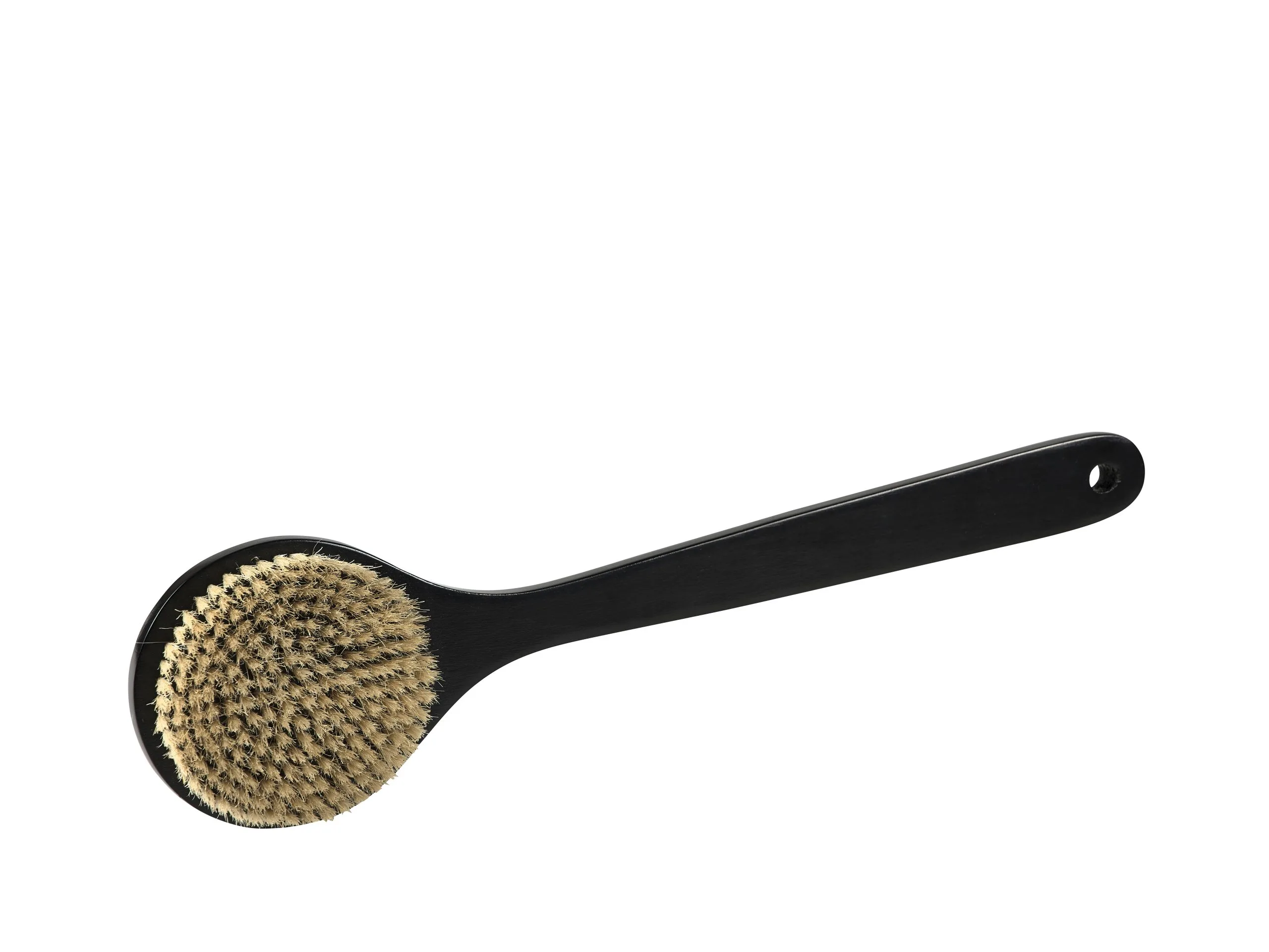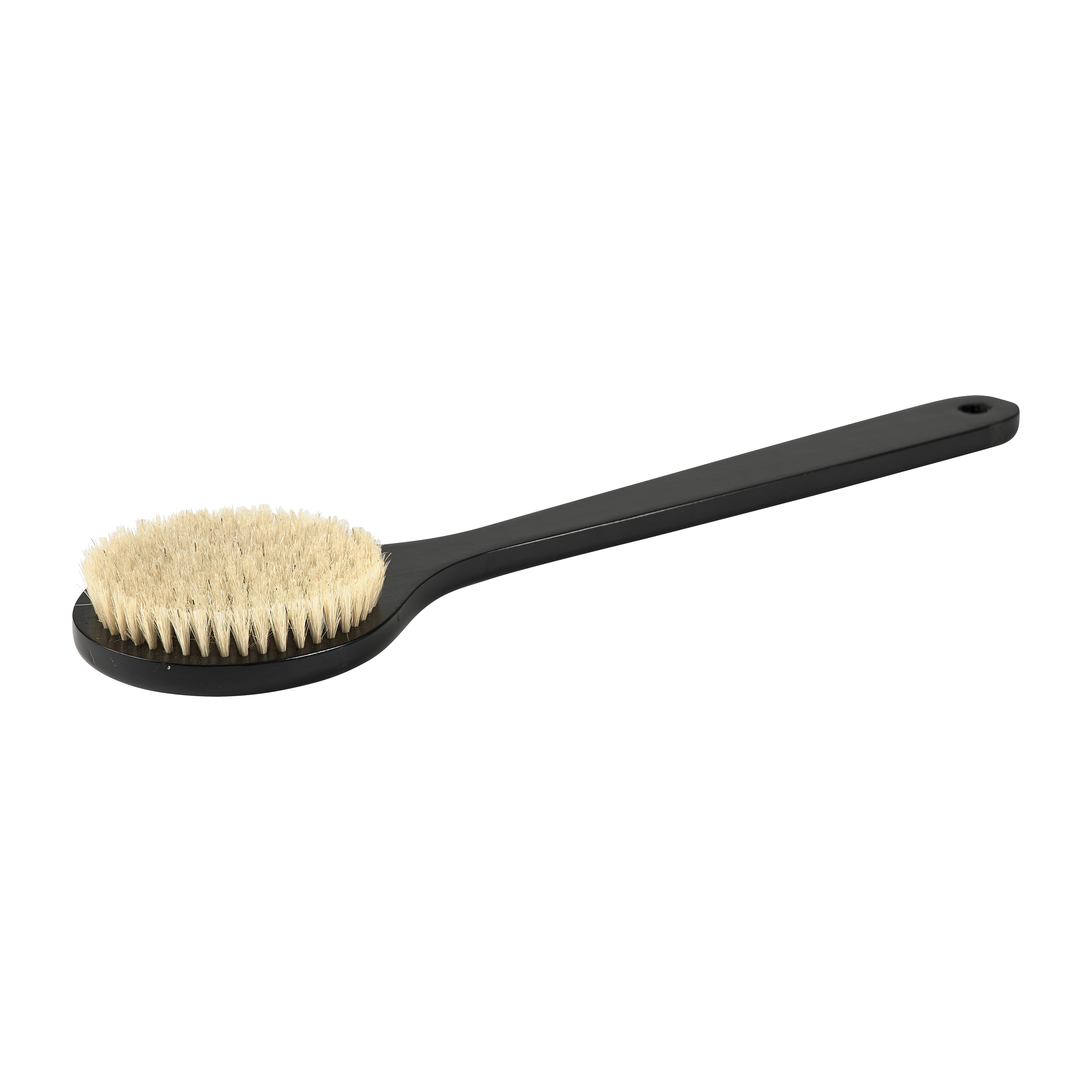 Skøn badebørste fremstillet af træsorten Schima, som er et stedsegrønt træ beslægtet med tefamilien, samt naturhår, hvilket giver en blid skrubbeeffekt.
