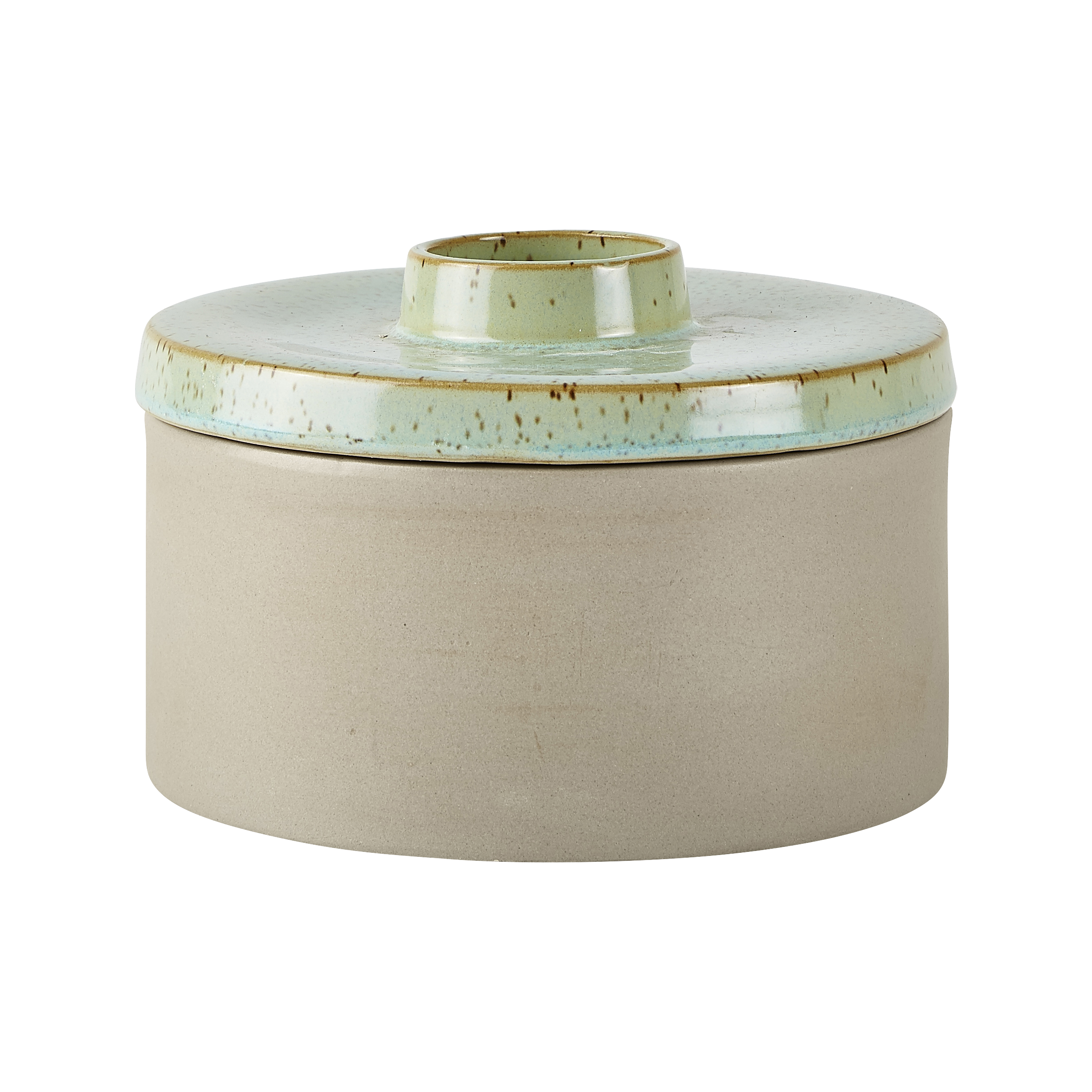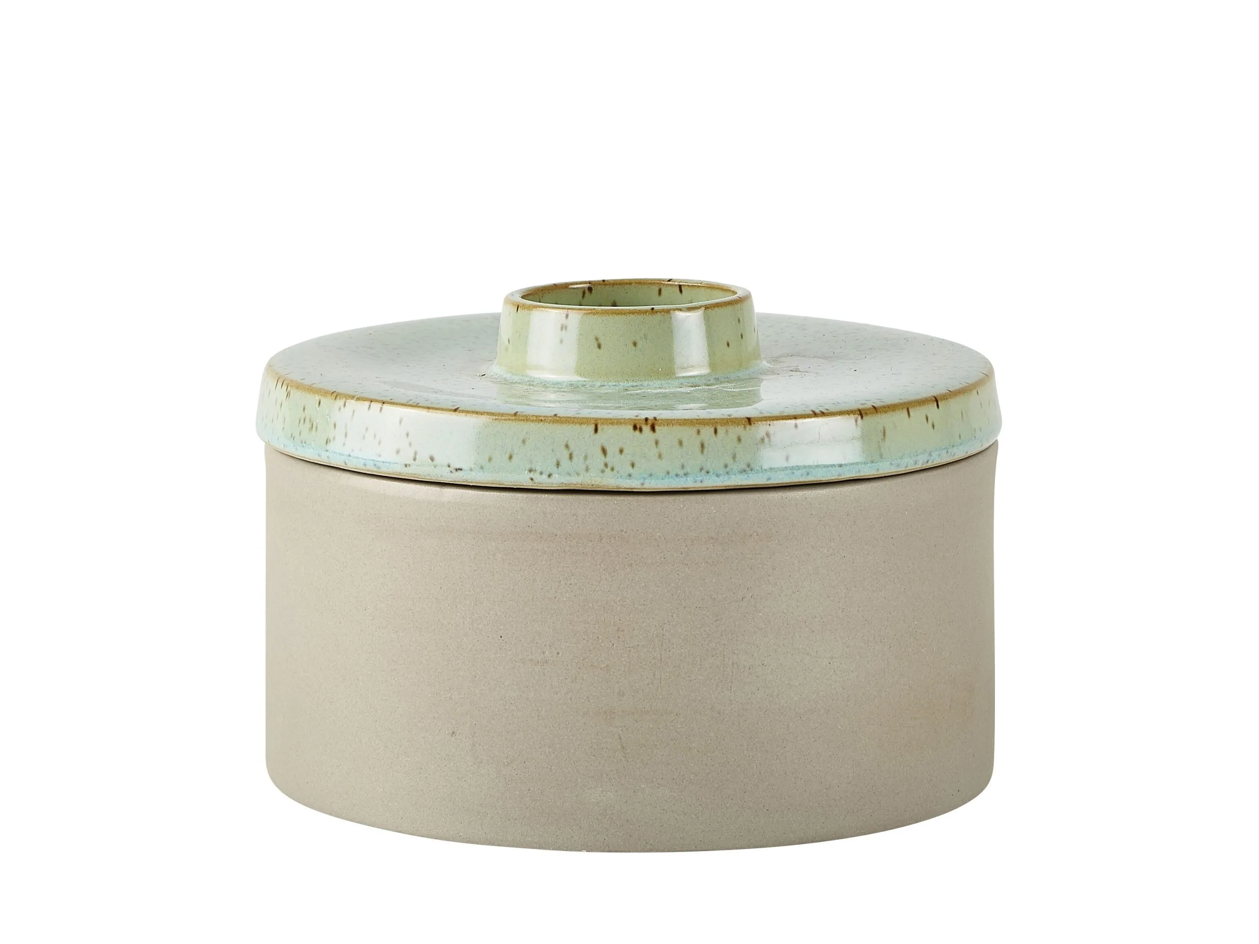 Anderledes og rustik stentøjsvase med låg. Igennem lågets hul kan du sætte fine blomster.