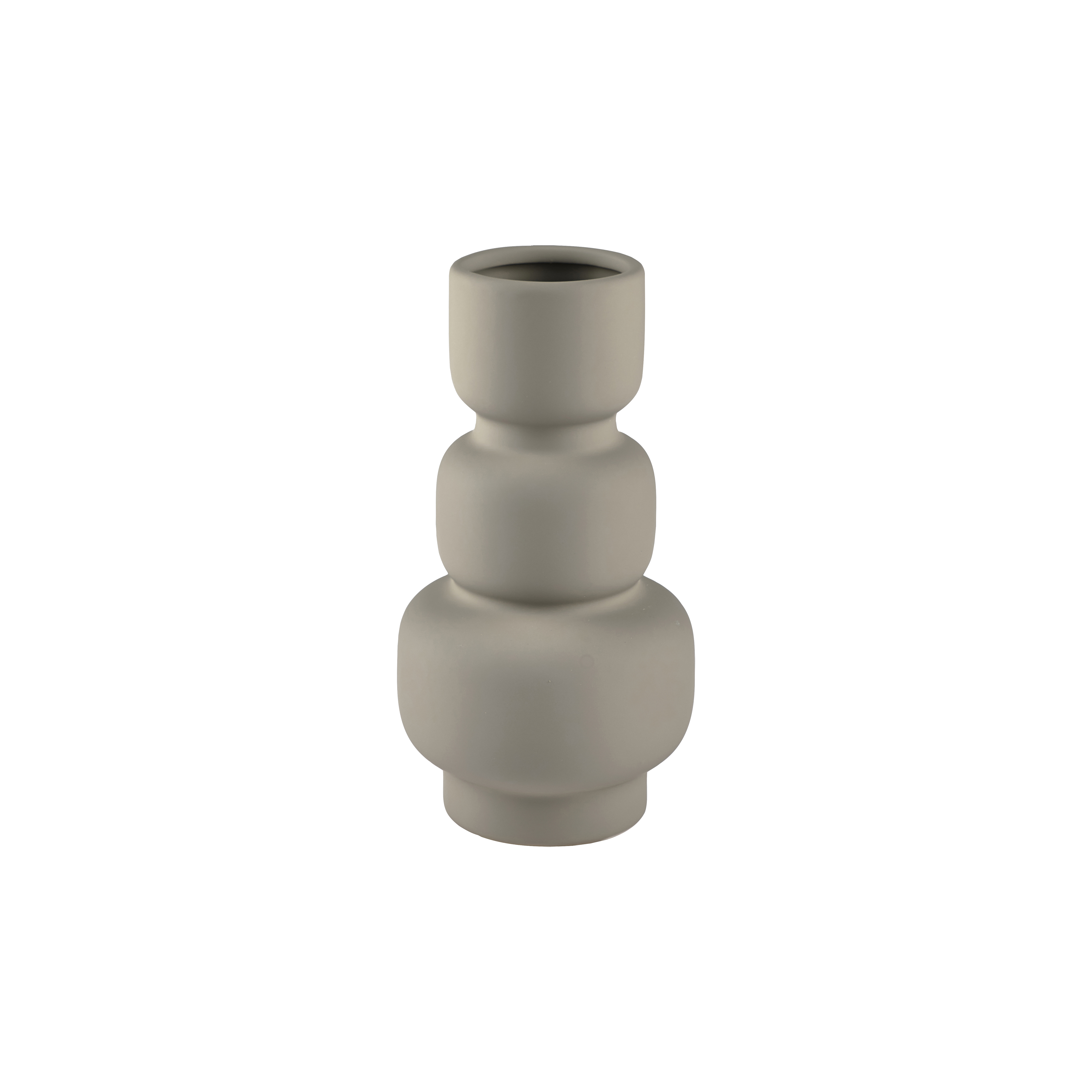 Stentøjsvase med mat soft coating-glasur. Grå. Denne vase gør indretningen stilfuld med sine bløde og skulpturelle former. Vasen pynter smukt både med og uden blomster. D 11,2 x H 21,3 cm.