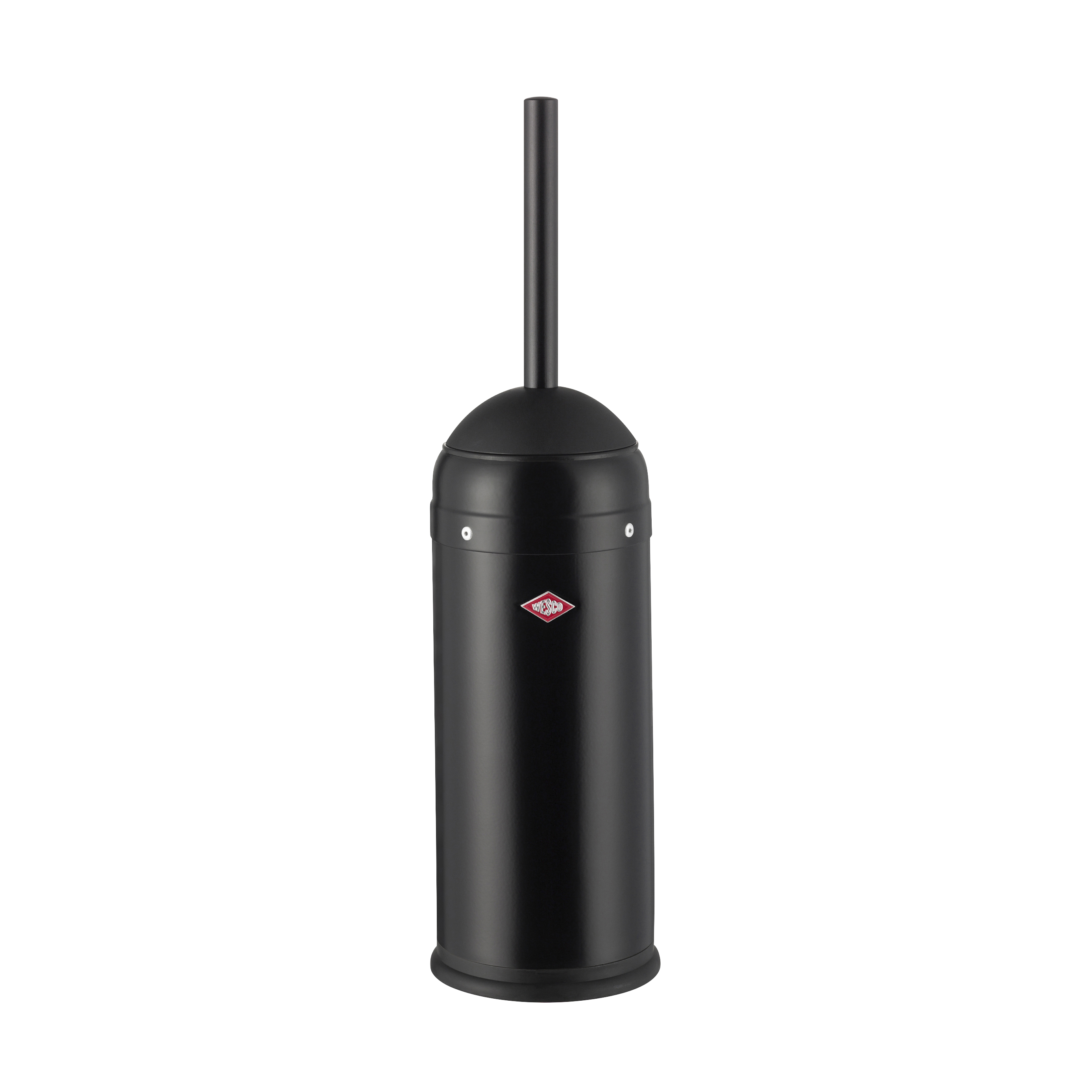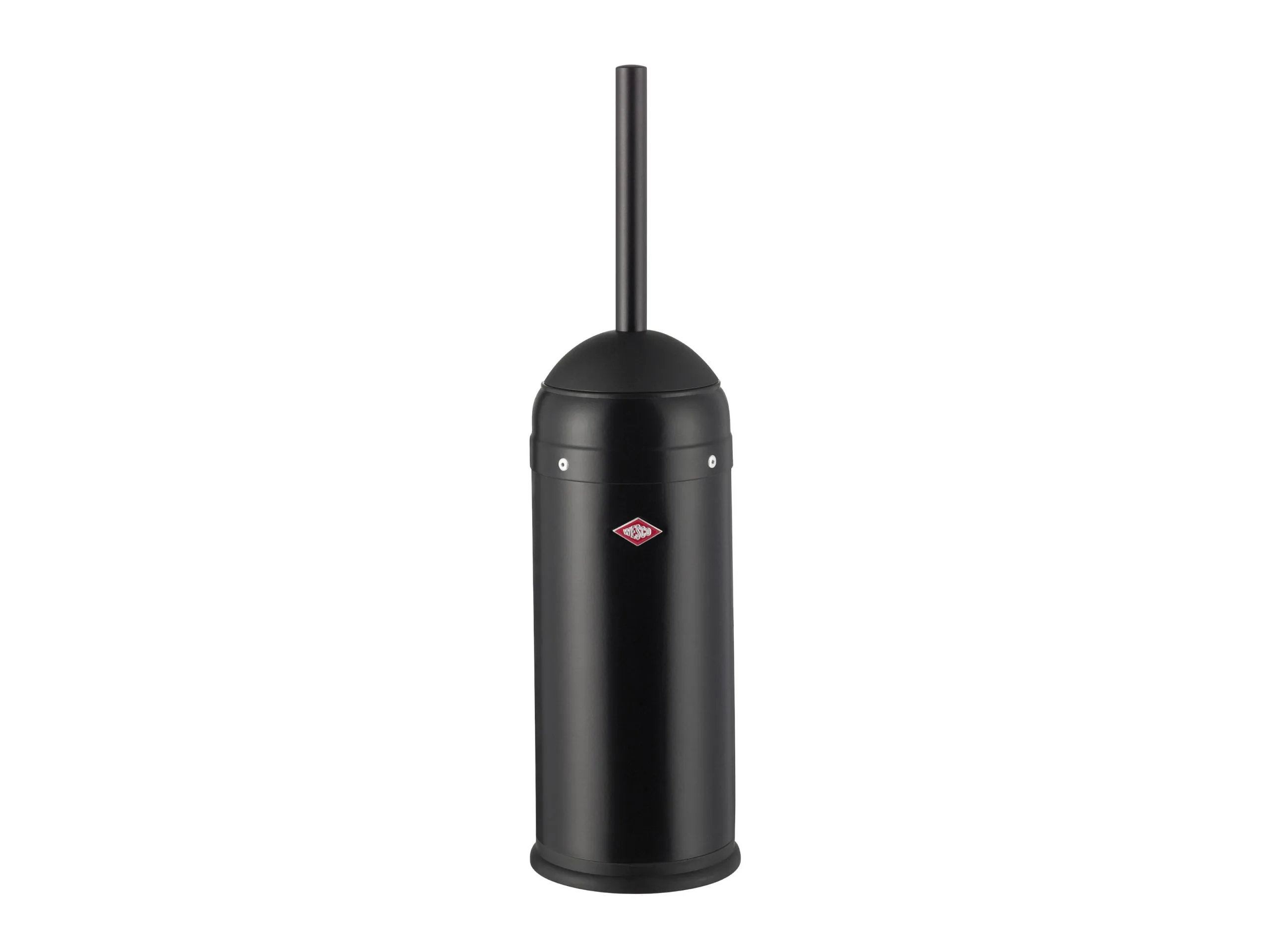 Toiletbørste udført i typisk Wesco-materialekombination: rustfrit stål og pulverlakeret pladestål. Håndtag og hætte er udført i plastik og aluminium. I kombination med WESCOs Mini Master udgør de det perfekte par til badeværelset.