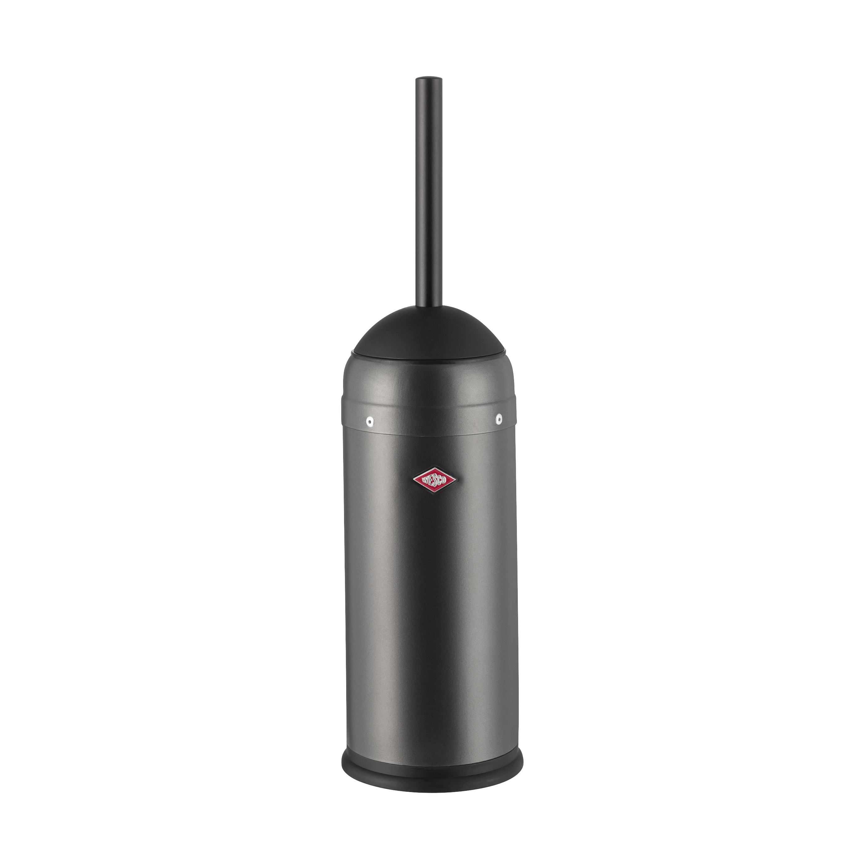 Toiletbørste udført i typisk Wesco-materialekombination: rustfrit stål og pulverlakeret pladestål. Håndtag og hætte er udført i plastik og aluminium. I kombination med WESCOs Mini Master udgør de det perfekte par til badeværelset.