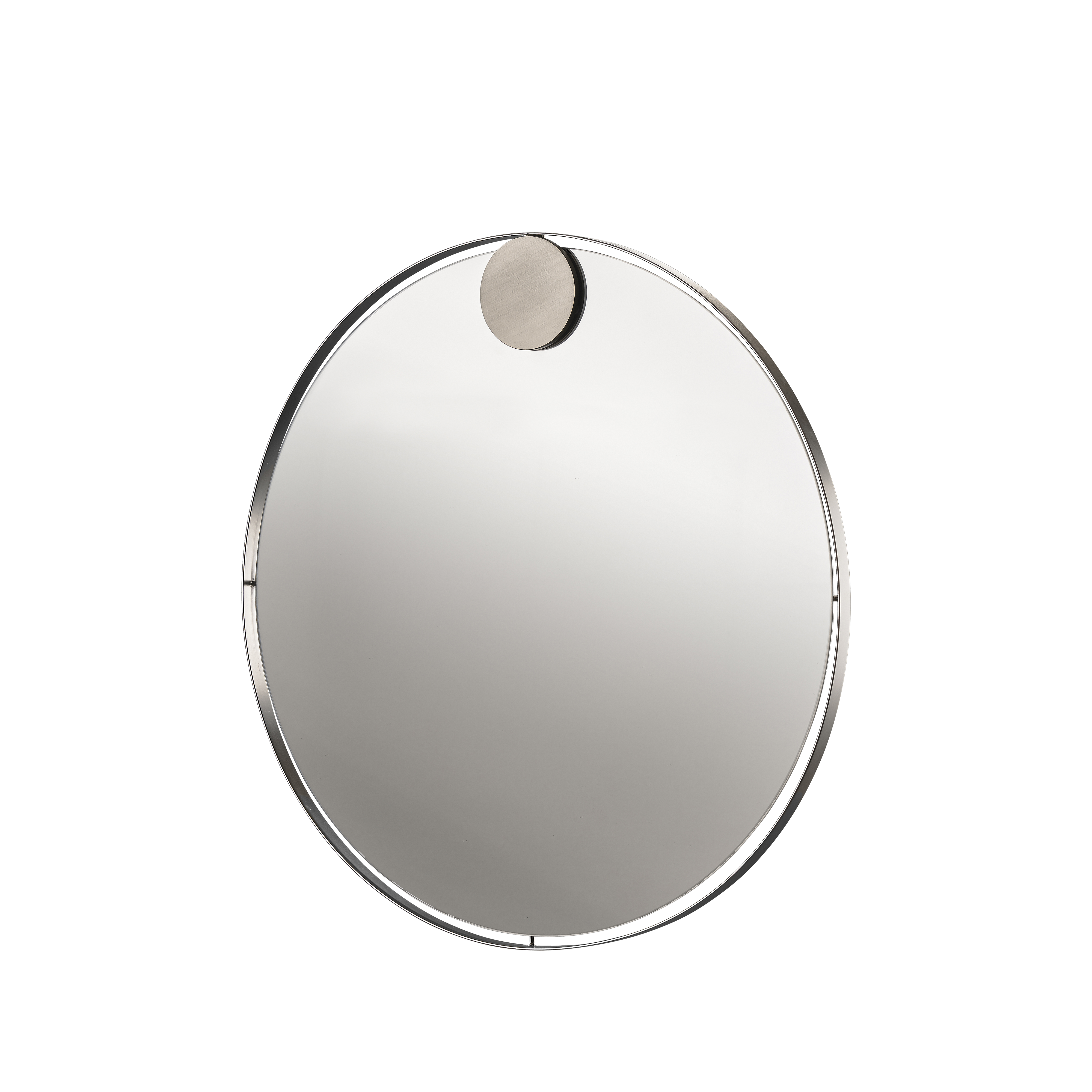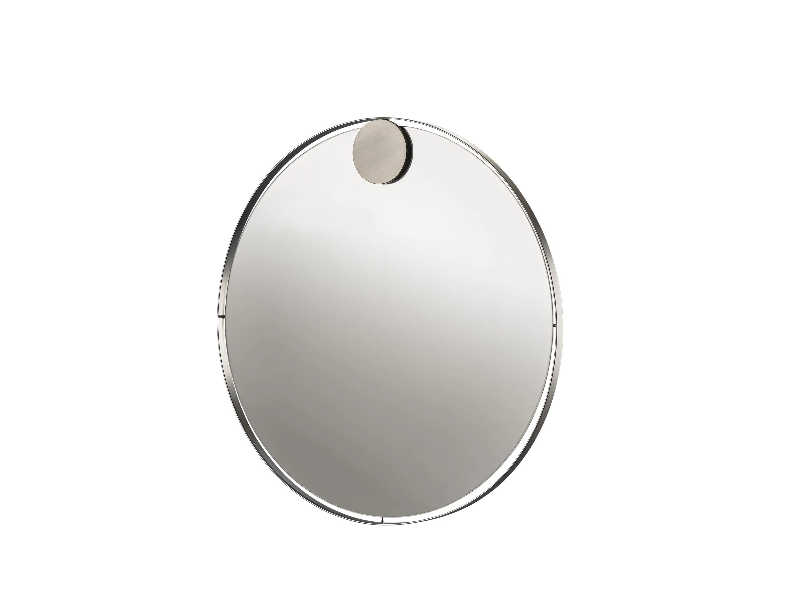 Interiørserien Hooked on Rings tæller dette vægspejl, der giver en illusion af, at det svæver i sin ramme. Spejlets ramme er udført i børstet stål, det har en diameter på 50 cm og vil gøre sig godt i både entréen, soveværelset og badeværelset.